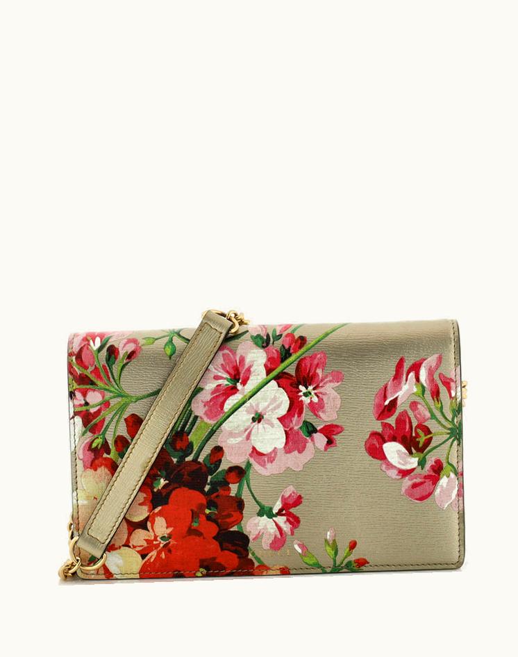 Gucci Chain Wallet Blooms Print Leather | GLINT