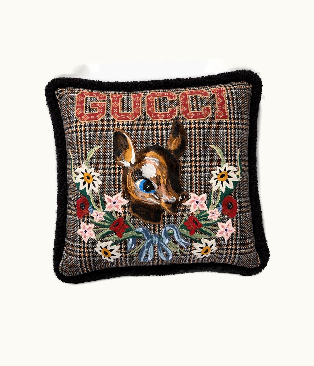 Gucci Check Wool Cushion With Fawn | GLINT