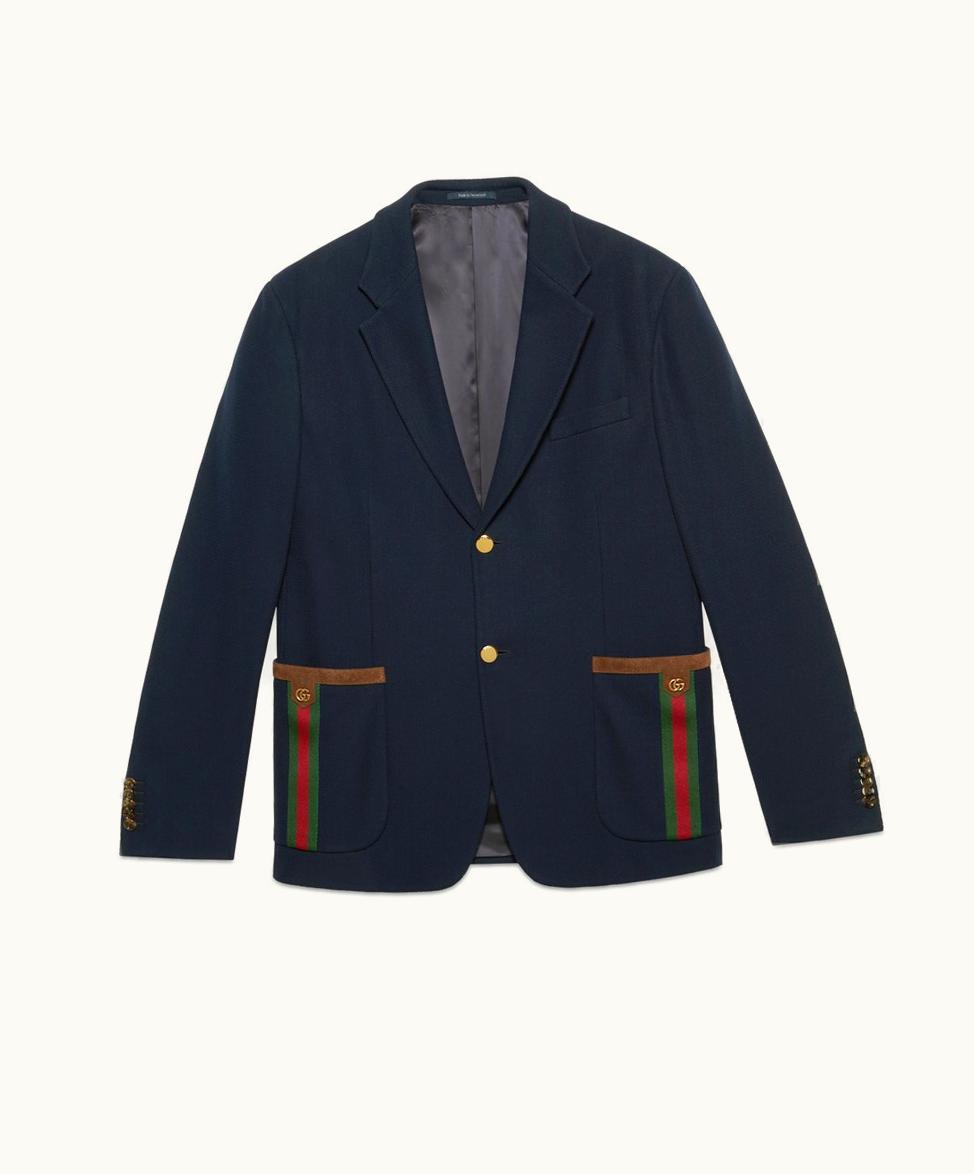 Gucci Cotton Jersey Jacket With Web Blue | GLINT