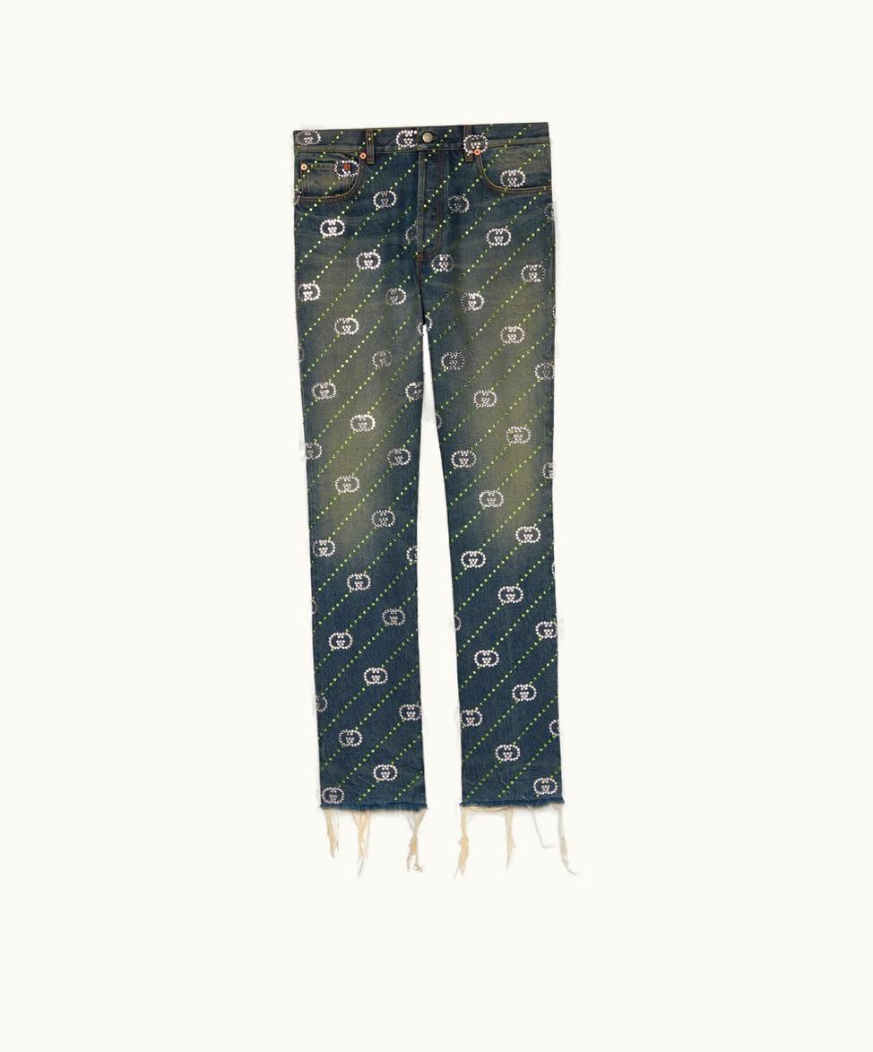 Gucci Crystal Interlocking G Denim Trouser Blue | GLINT