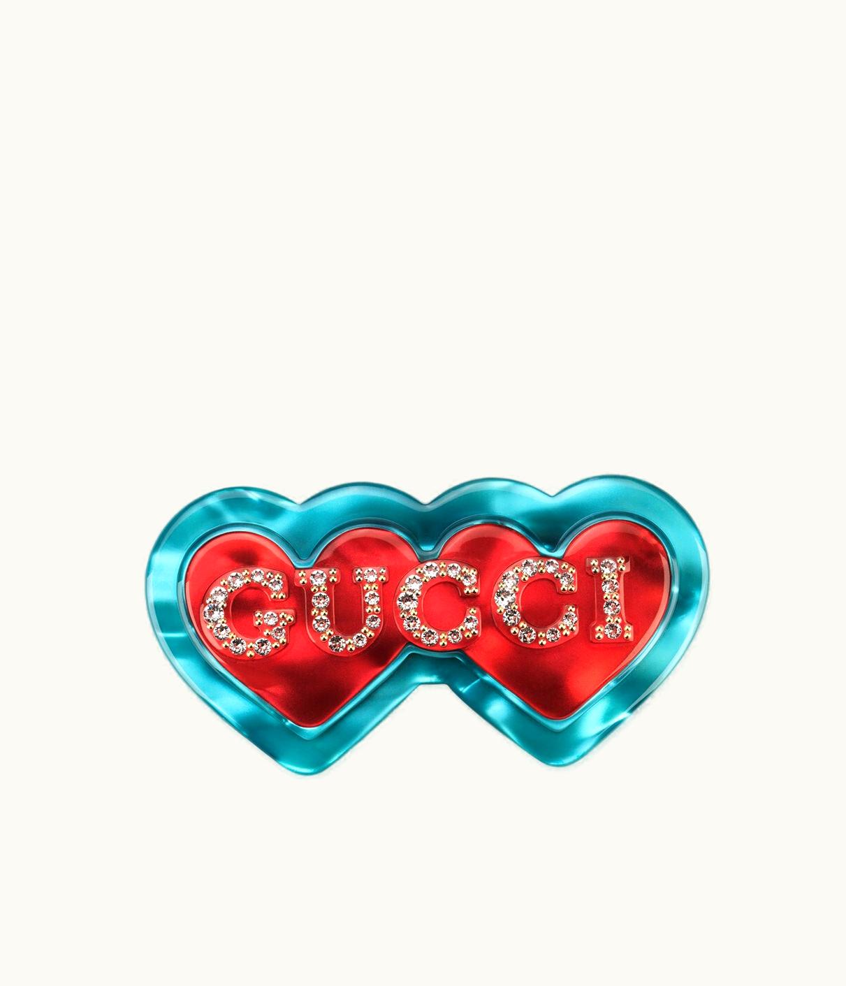 Gucci Double Heart Resin Brooch UZ0136890 | GLINT