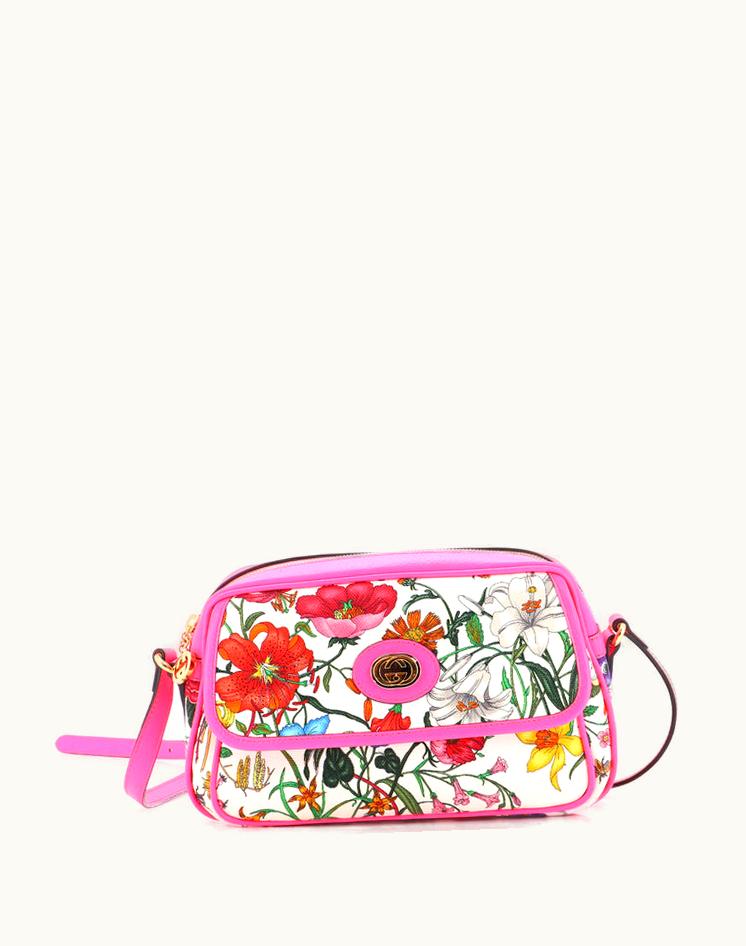 Gucci Flora Canvas Small Shoulder Bag Pink | GLINT