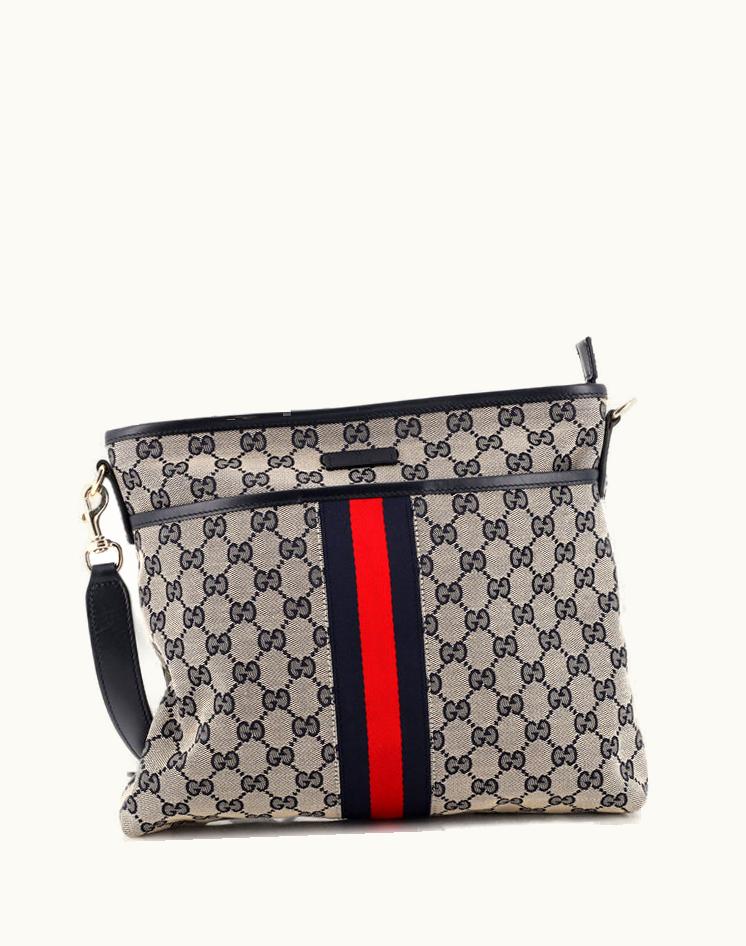Gucci Front Pocket Web Messenger GG Canvas Small Blue & Black | GLINT
