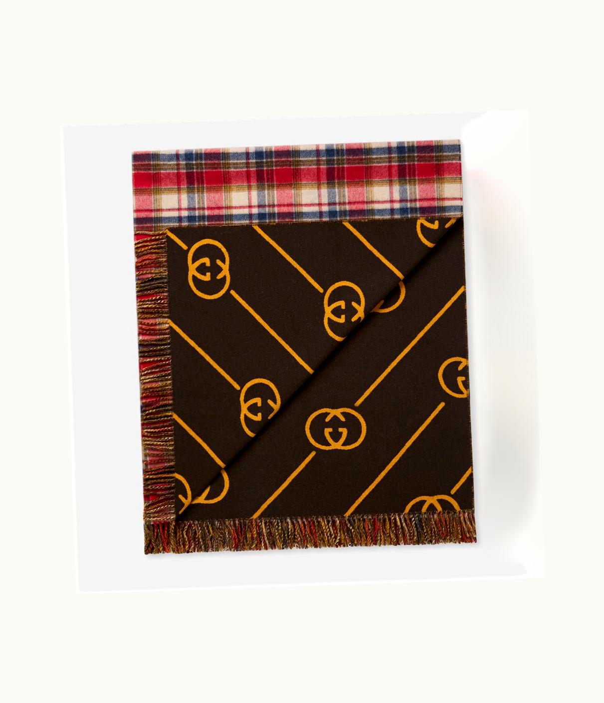 Gucci GG And Check Wool Throw Blanket | GLINT