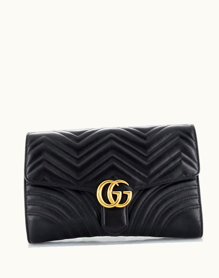 Gucci GG Marmont Flap Clutch Matelasse Leather Black Luxury Clutch | GLINT