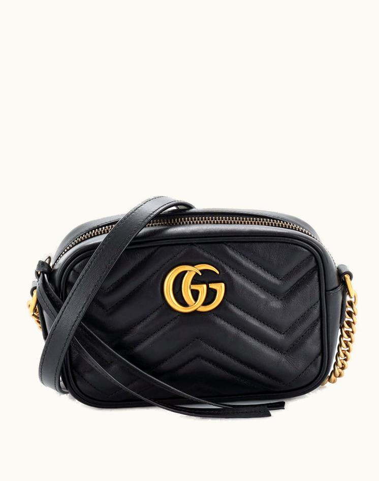 Gucci GG Marmont Mini Shoulder Bag Matelasse Leather Black Aged Gold | GLINT
