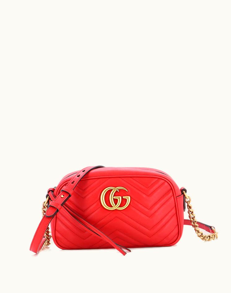 Gucci GG Marmont Shoulder Bag Matelasse Leather Small in Red | GLINT