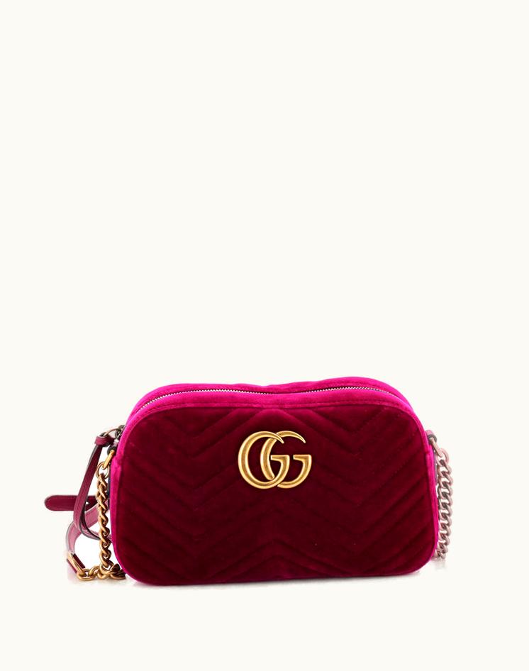 Gucci GG Marmont Shoulder Bag Matelasse Velvet Small Pink Aged Gold | GLINT