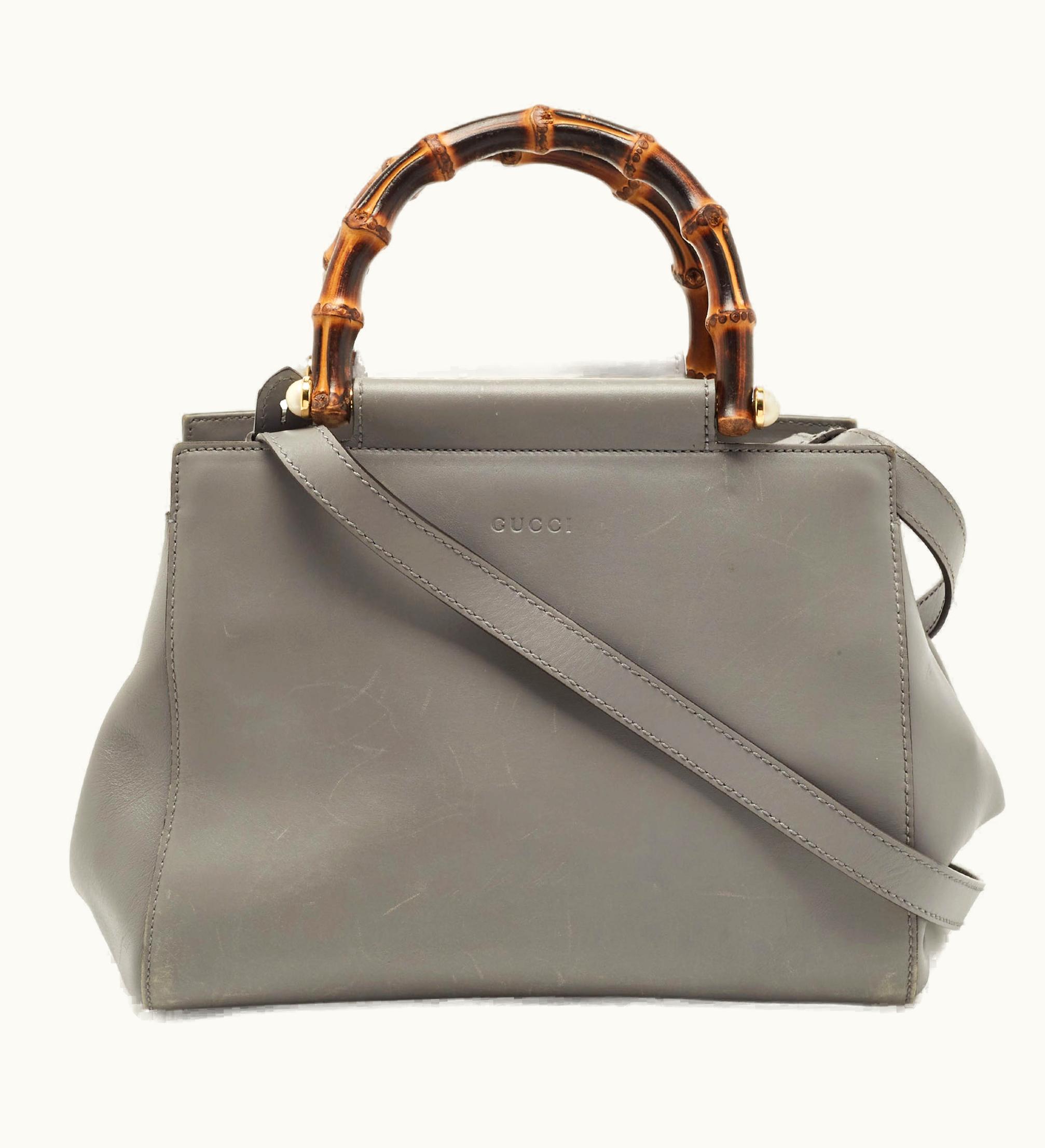 Gucci Grey Leather Small Nymphaea Bamboo Tote | GLINT