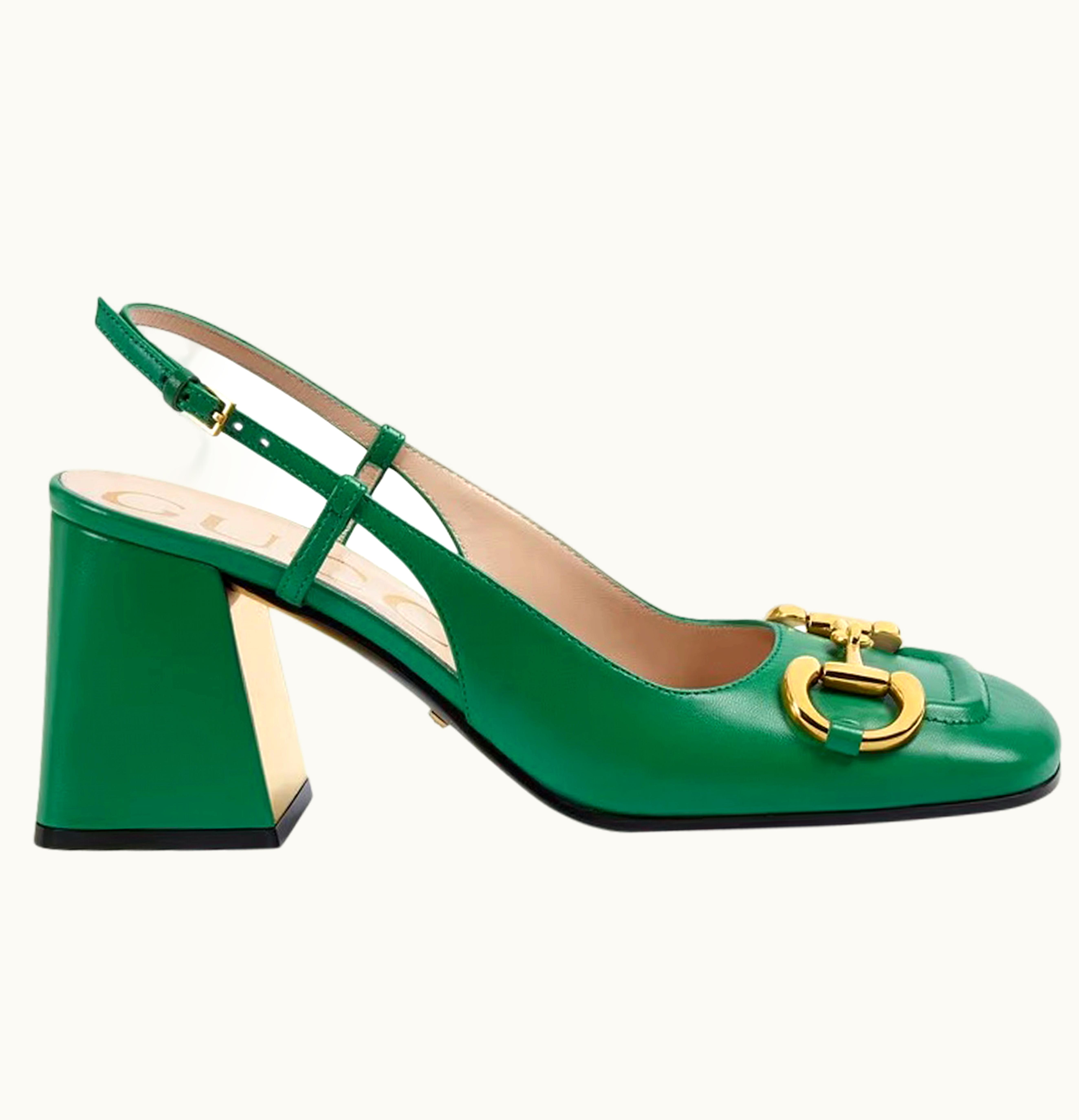 Gucci Horsebit 75mm Heeled Slingback Bright Green Leather | GLINT