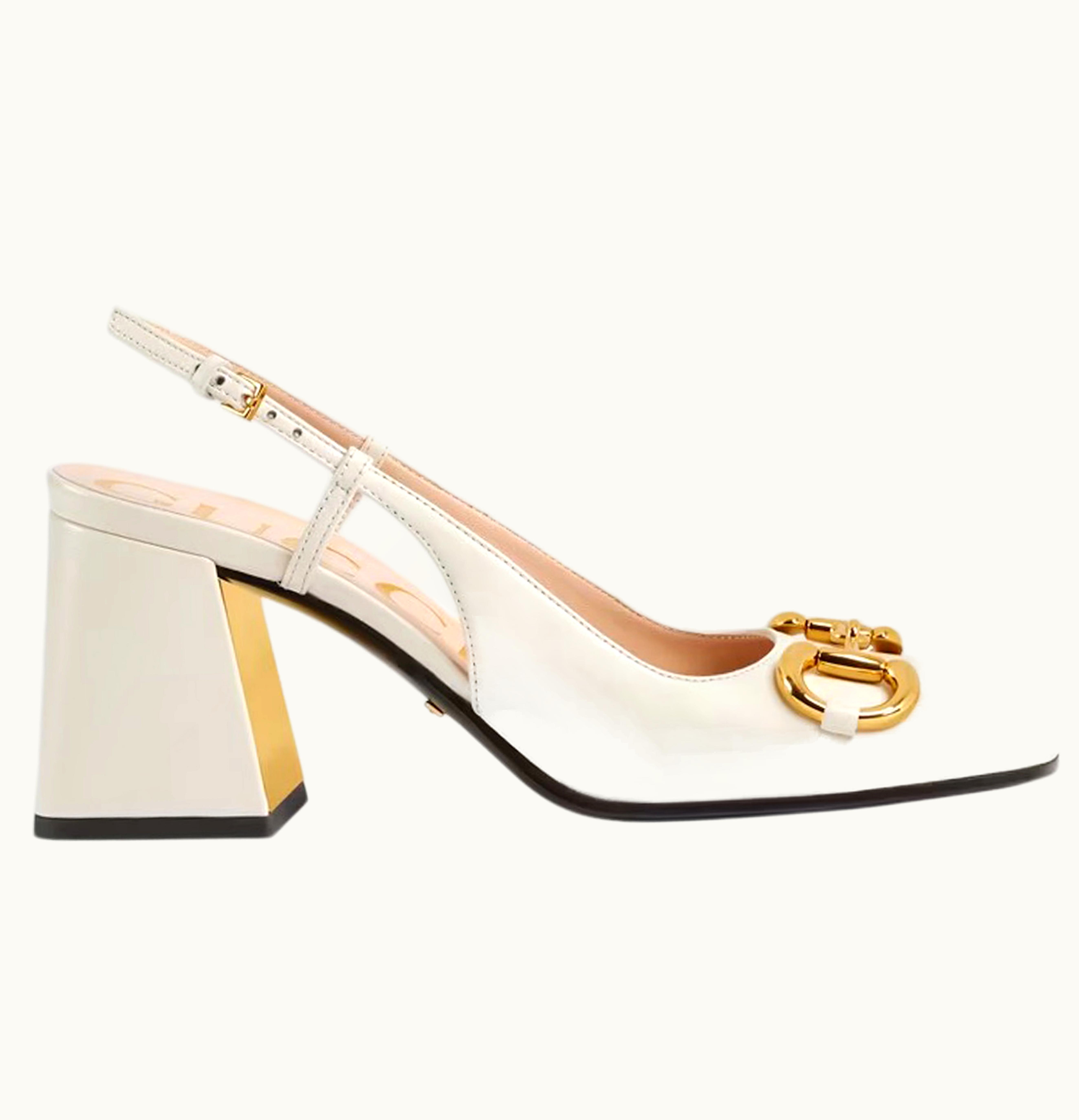 Gucci Horsebit 75mm Heeled Slingback White Leather | GLINT