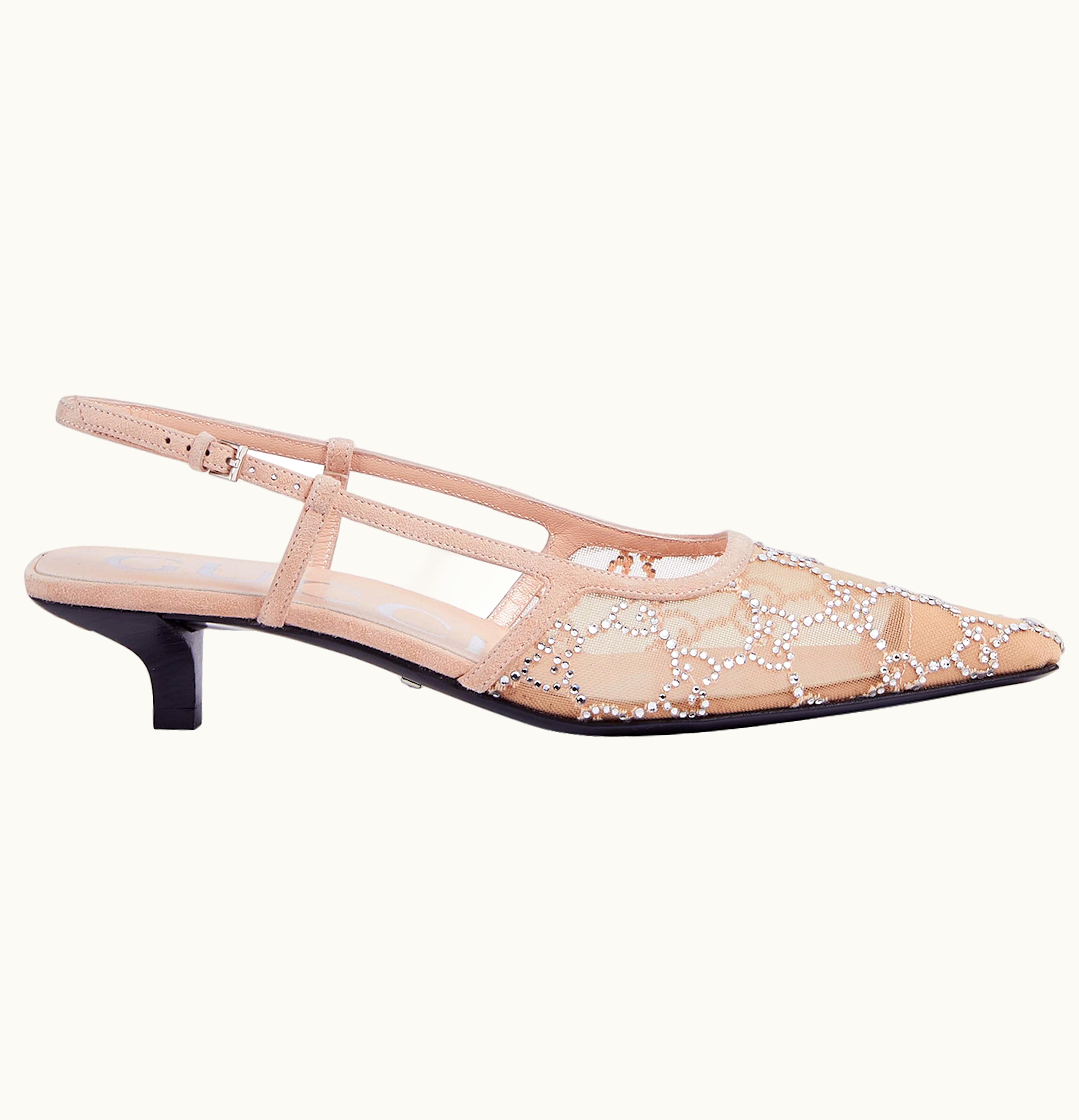 Gucci GG Slingback 35mm Pump Rose Beige GG Crystals | GLINT