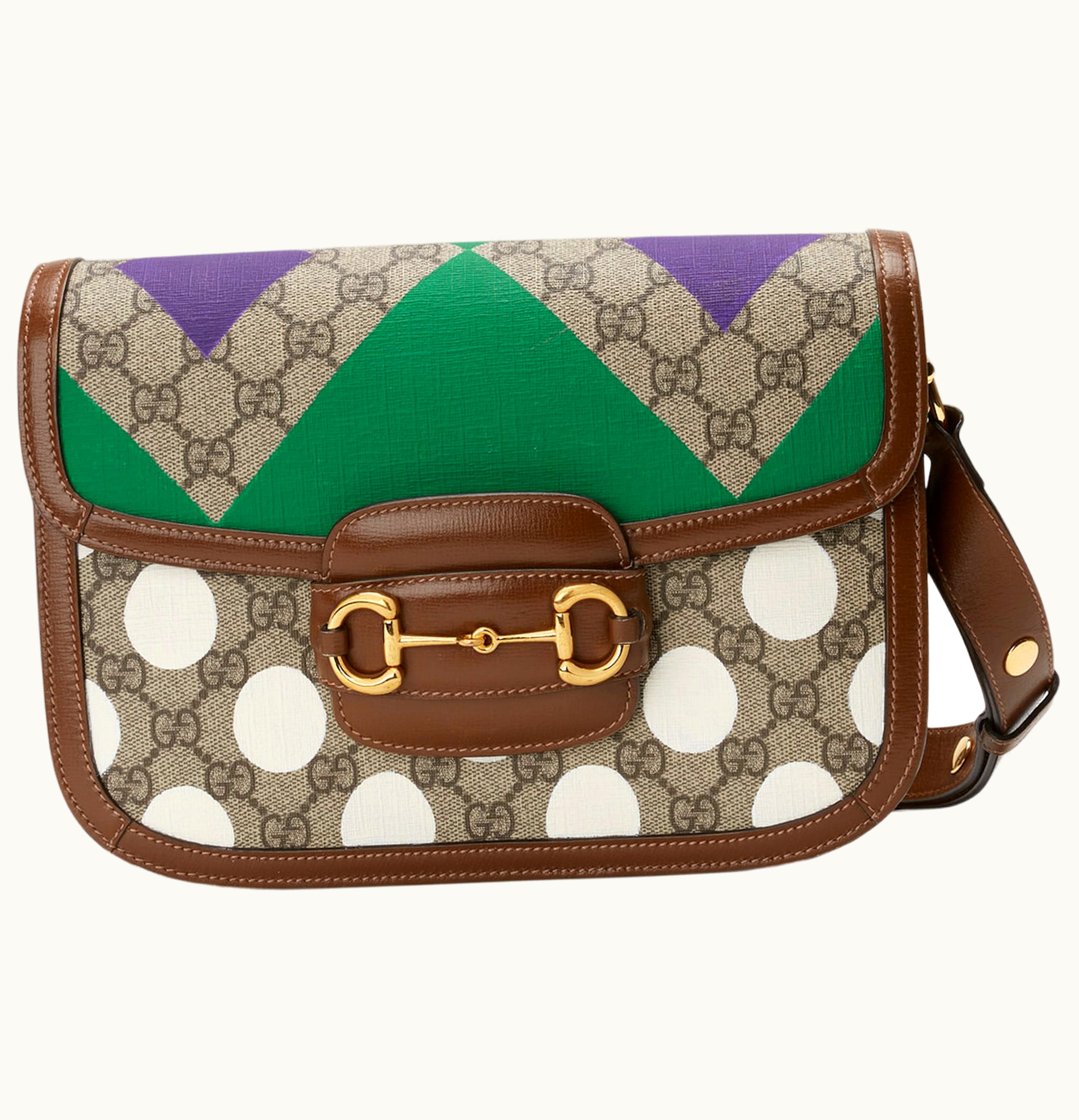 Gucci Horsebit 1955 Shoulder Bag Geometric Print GG Supreme Beige Ebony Multi | GLINT