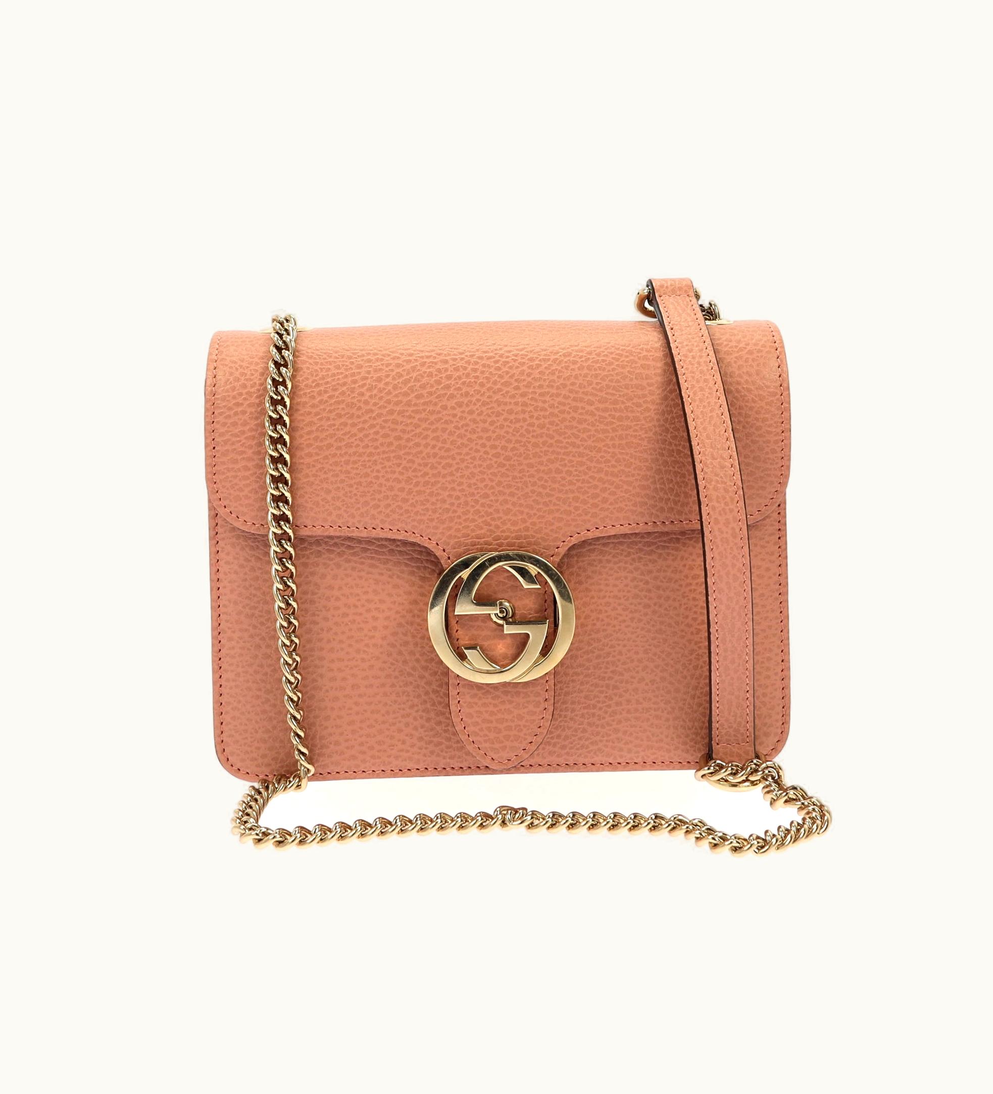 Gucci Interlocking Crossbody Bag In Pink Leather | GLINT