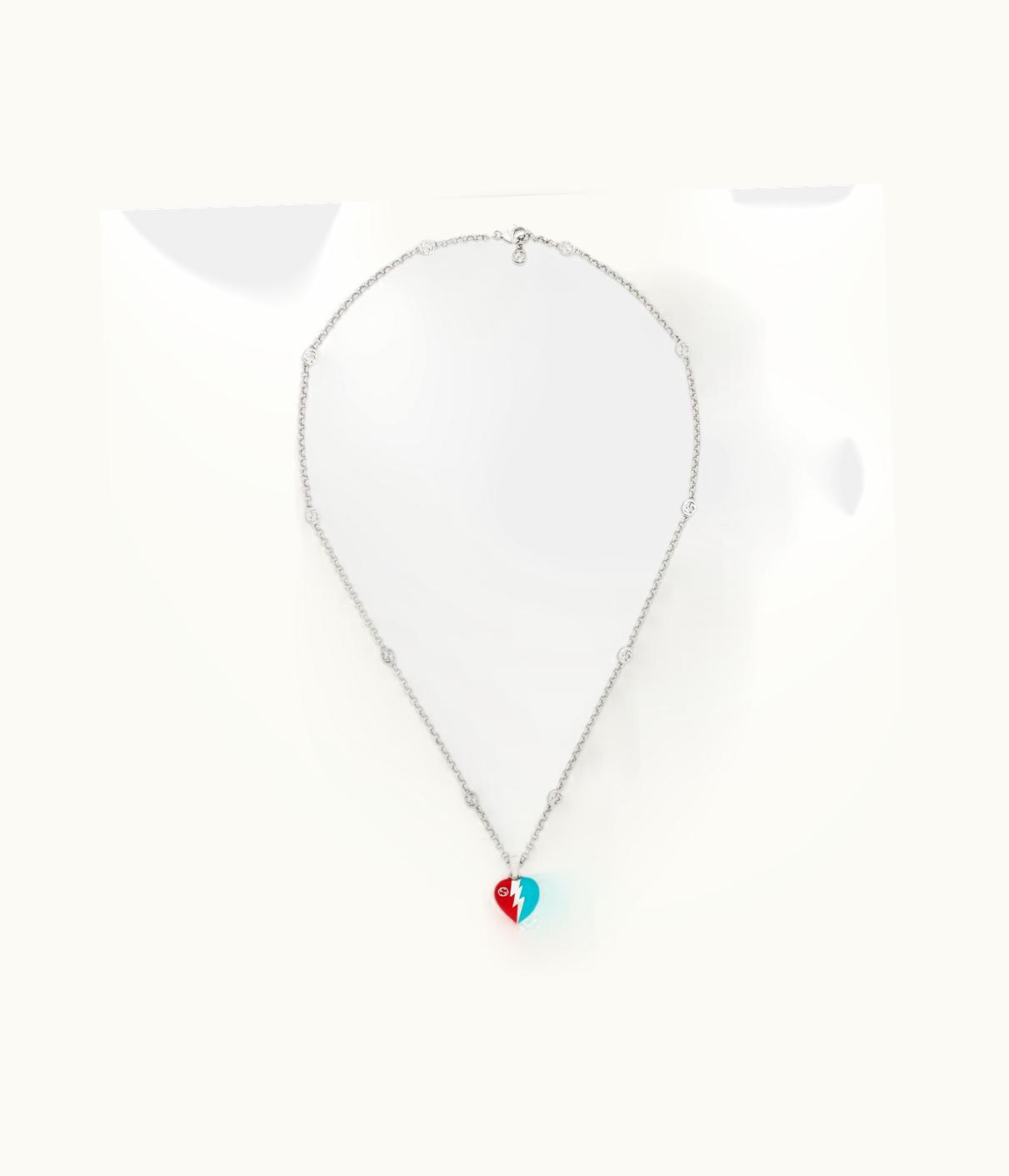 Gucci Interlocking G Heart Lightning Charm Necklace UZ0136806 | GLINT