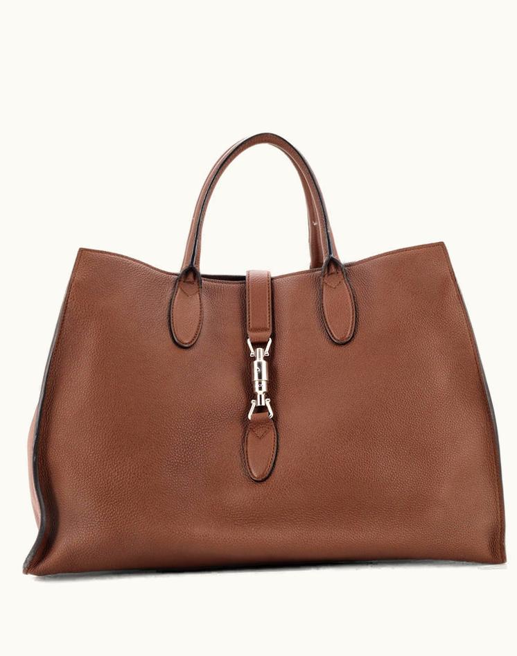 Gucci Jackie Soft Tote Leather Large Brown Silver | GLINT