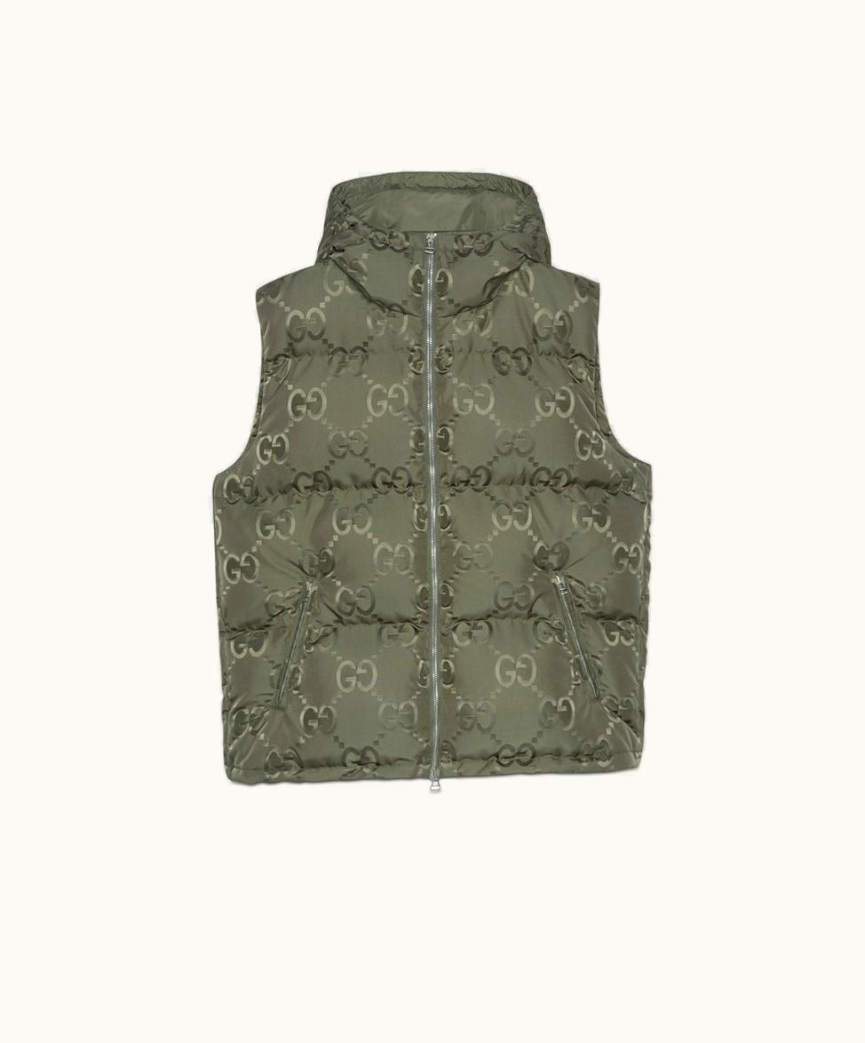 Gucci Jumbo GG Canvas Down Vest Green | GLINT