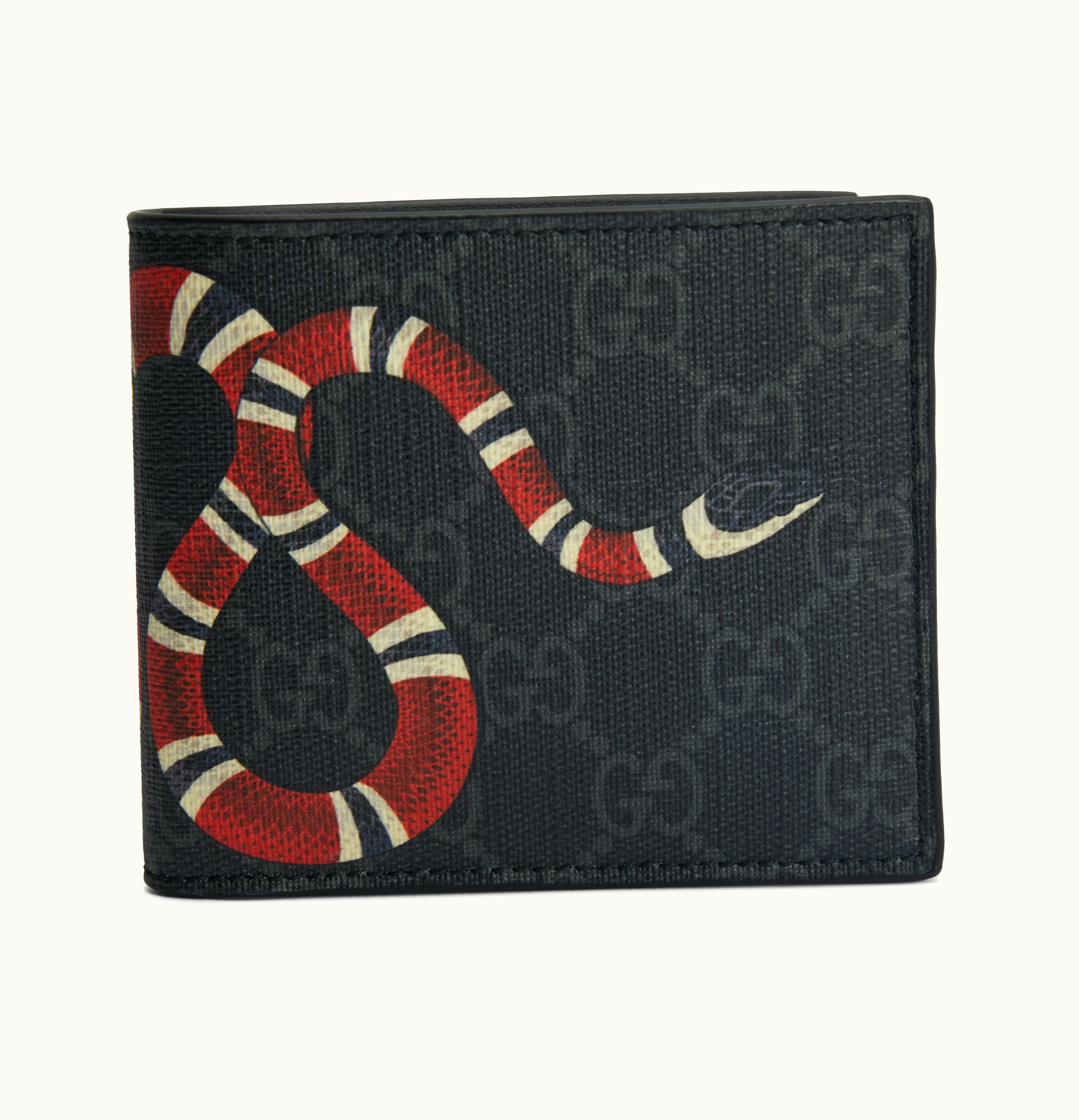 Gucci Kingsnake Wallet GG Supreme 8 Card Slots Black | GLINT