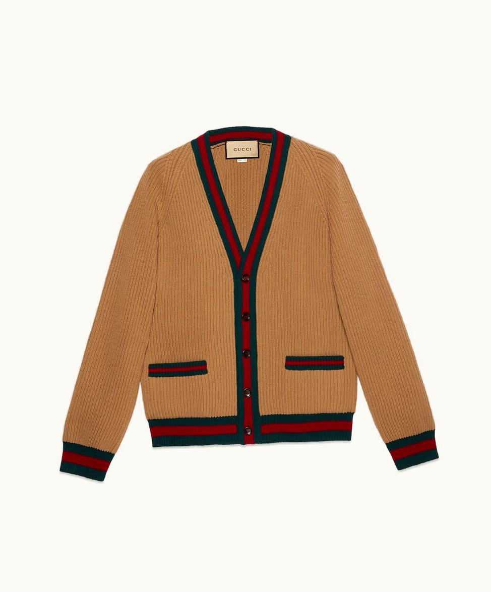 Gucci Knit Wool Cardigan With Web Camel | GLINT