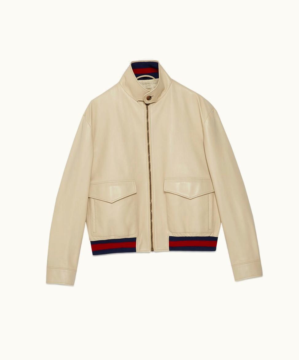 Gucci Leather Bomber Jacket Beige | GLINT