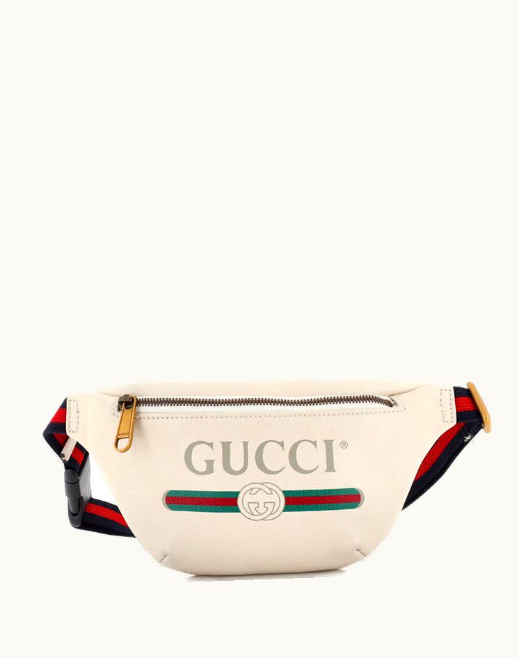 Gucci Logo Belt Bag Printed Leather Small Neutral Aged Gold | GLINT