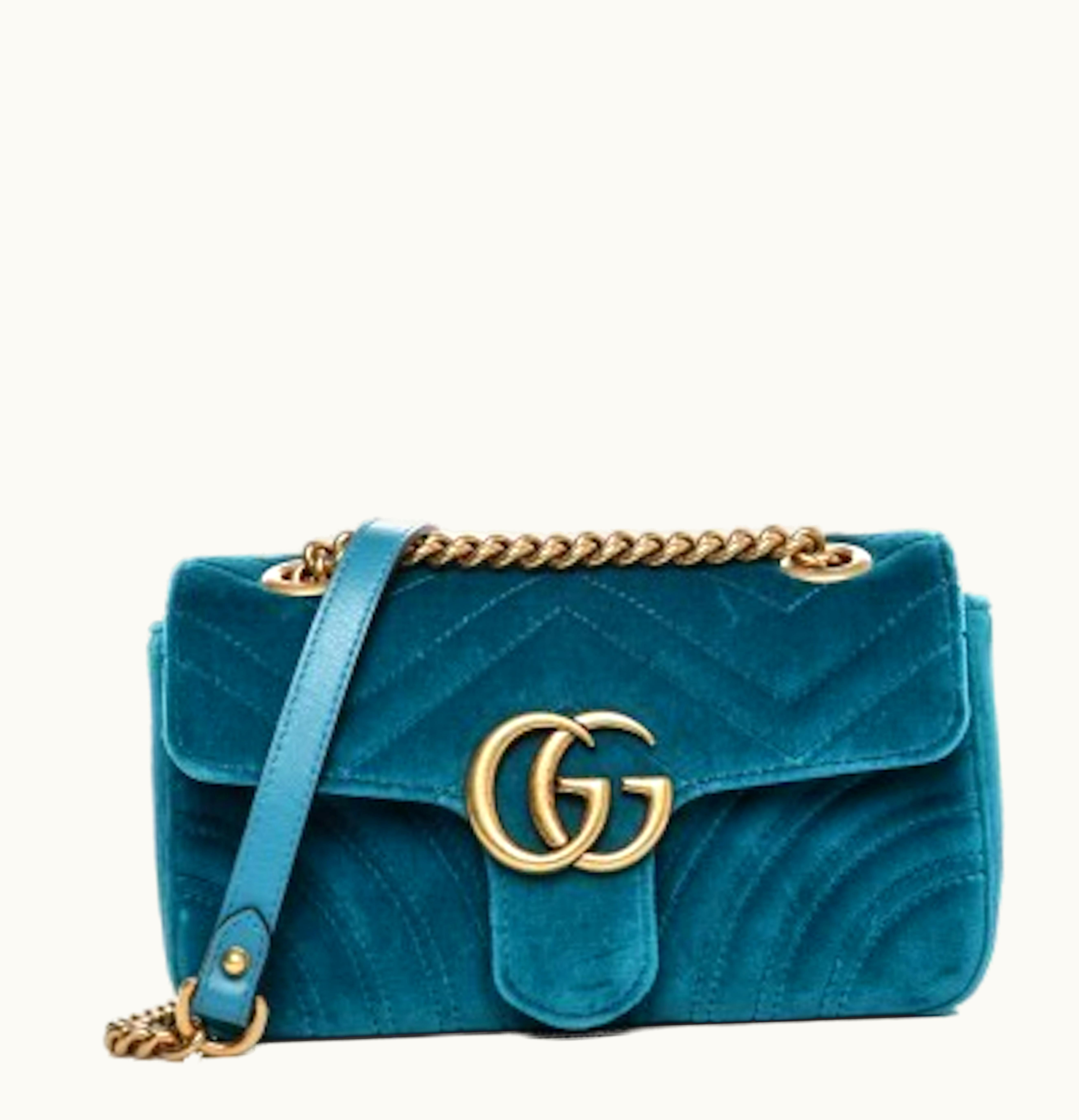 Gucci Matellase GG Marmont Mini Velvet Petrol Blue | GLINT