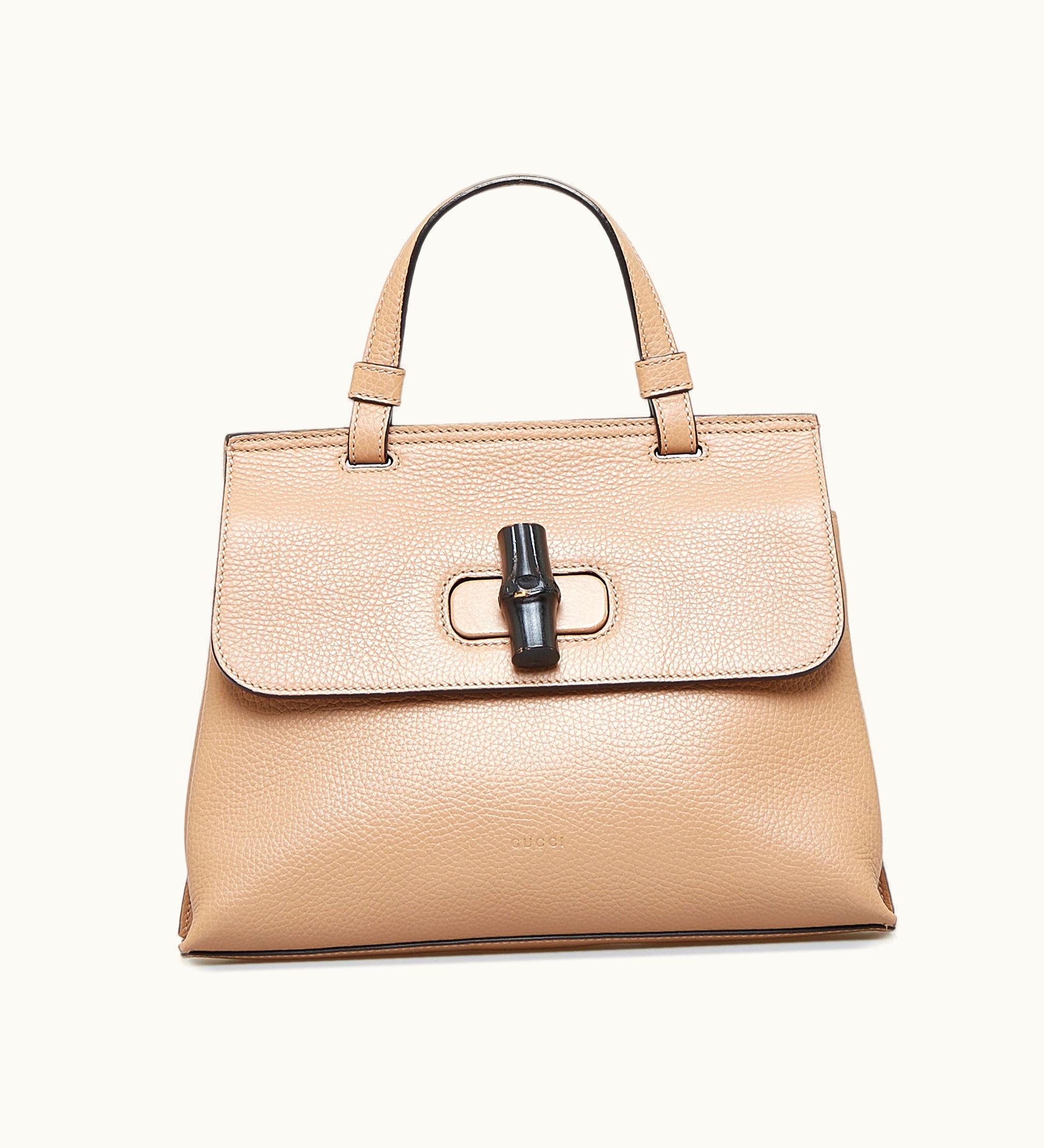 GUCCI Medium Bamboo Daily Satchel Leather Crossbody Black | GLINT