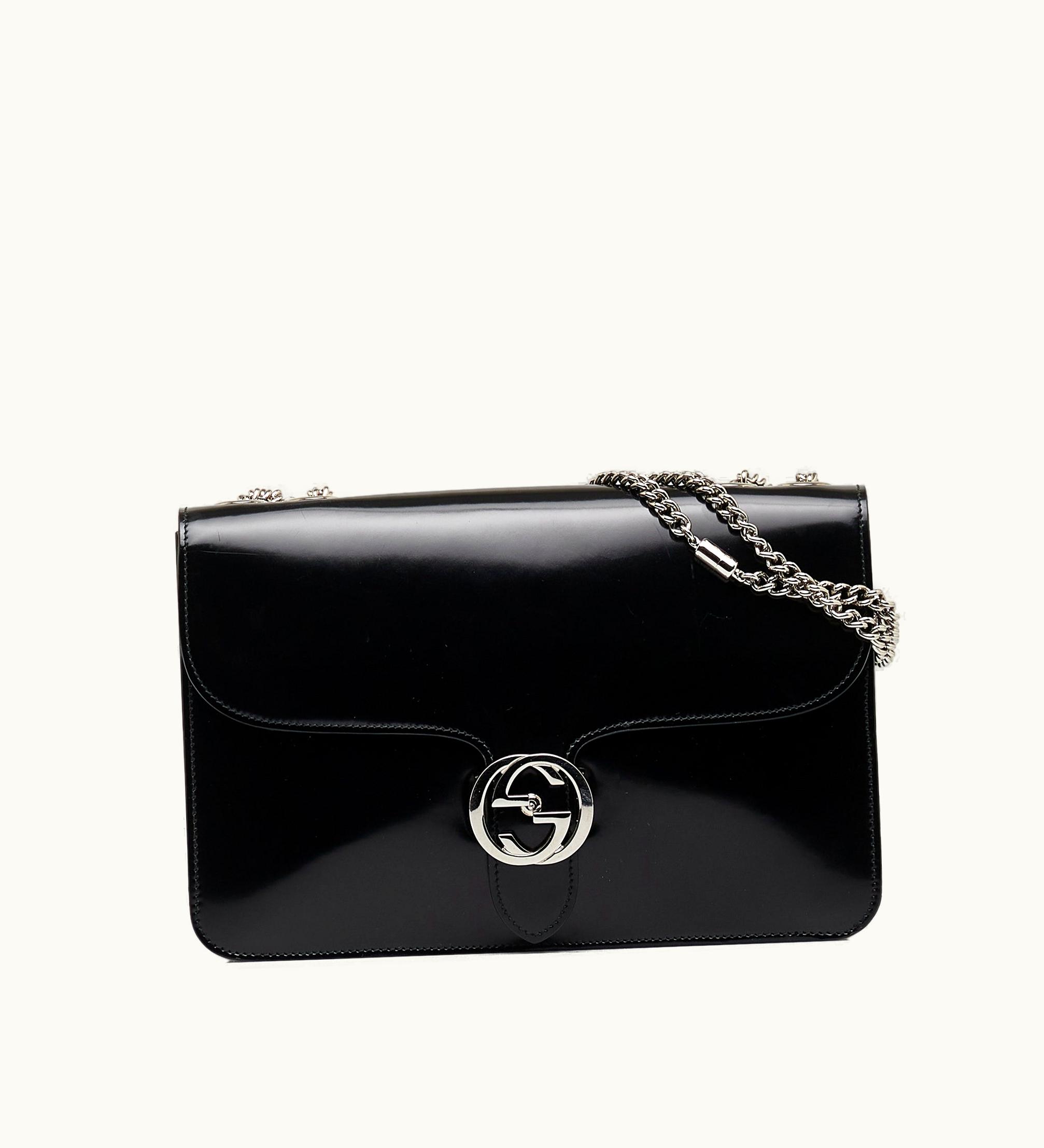 GUCCI Medium Dollar Interlocking G Crossbody Bag Black Leather | GLINT