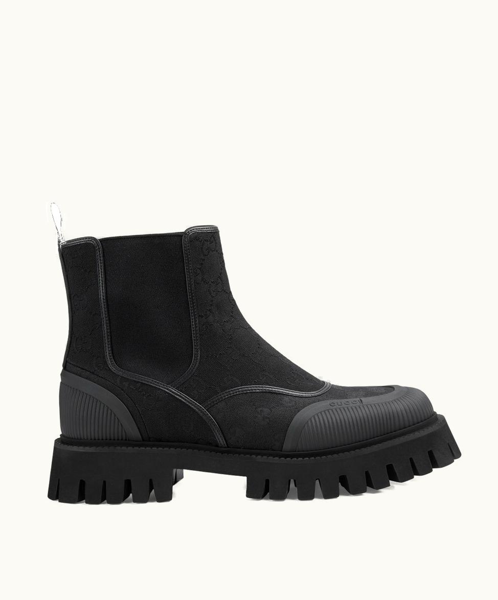 Gucci Men's GG Ankle Boot Black Canvas | GLINT