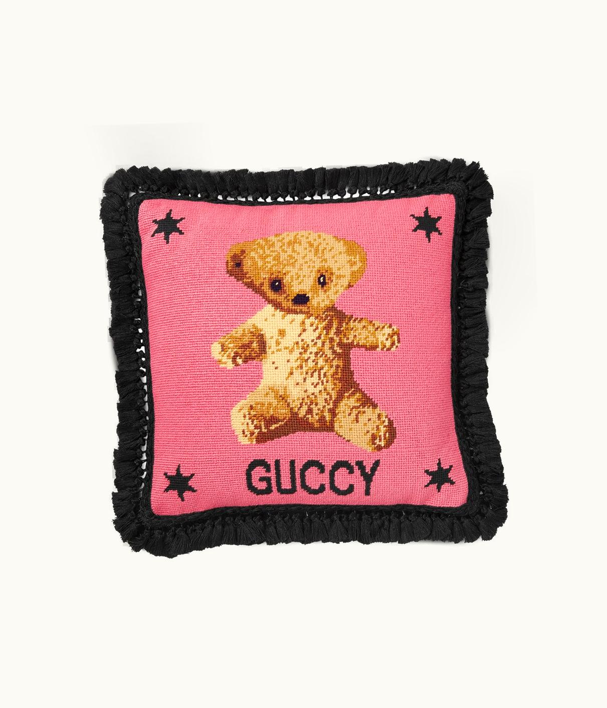 Gucci Needlepoint Cushion With Teddy Bear | GLINT