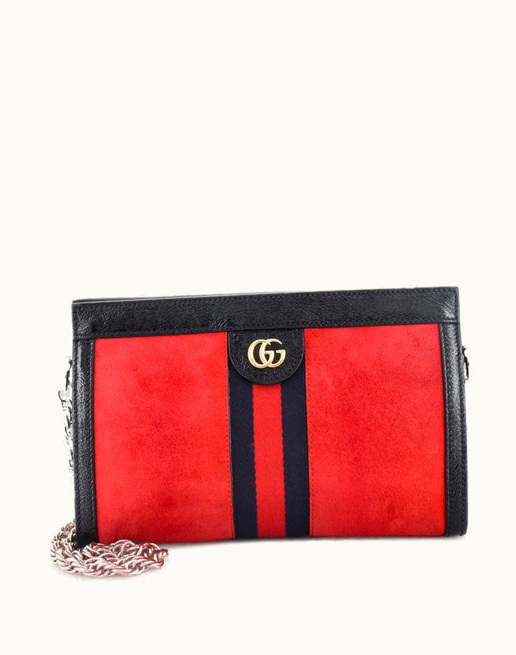 Gucci Ophidia Chain Shoulder Bag Small Suede Red | GLINT
