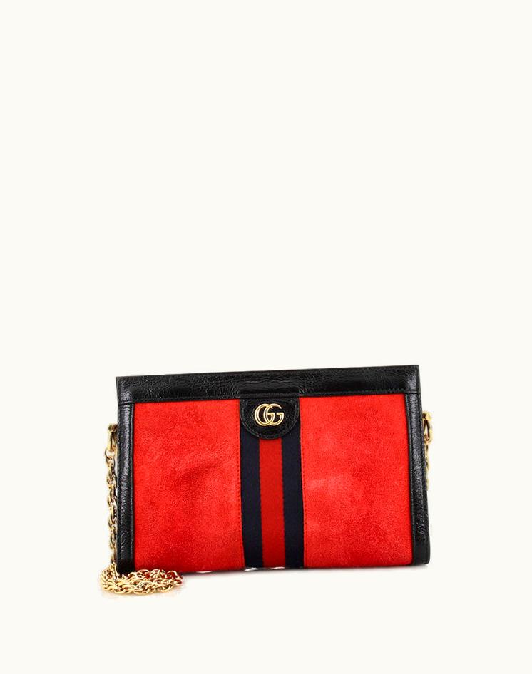 Gucci Ophidia Chain Shoulder Bag Suede Small Red Blue Gold | GLINT