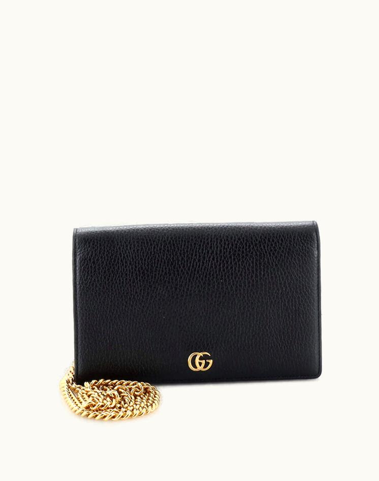 Gucci Petite GG Marmont Chain Wallet Leather Mini Black Gold | GLINT