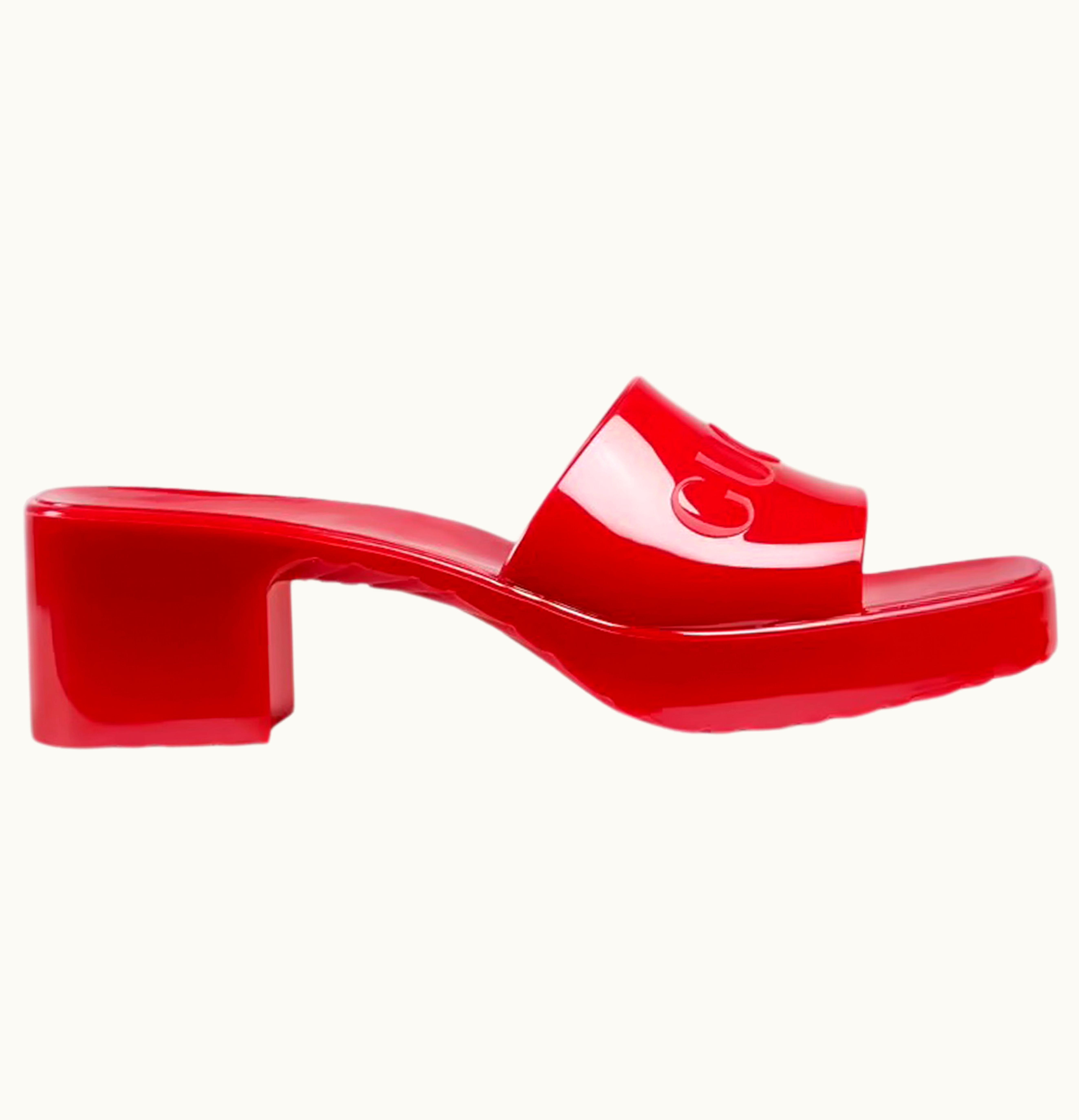 Gucci 60mm Slide Sandal Hibiscus Red Rubber | GLINT
