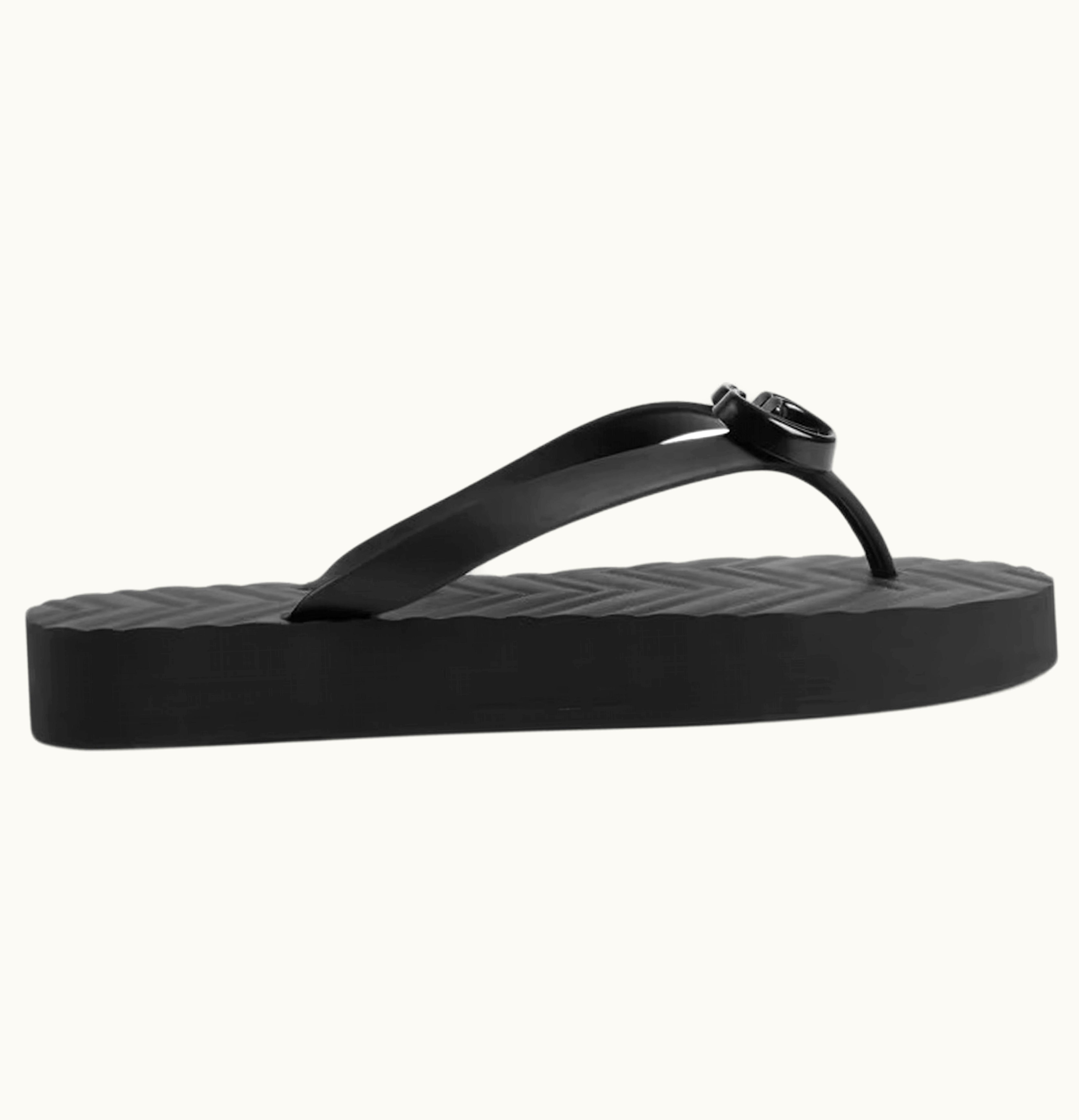 Gucci Chevron Thong Sandal Black Rubber W | GLINT