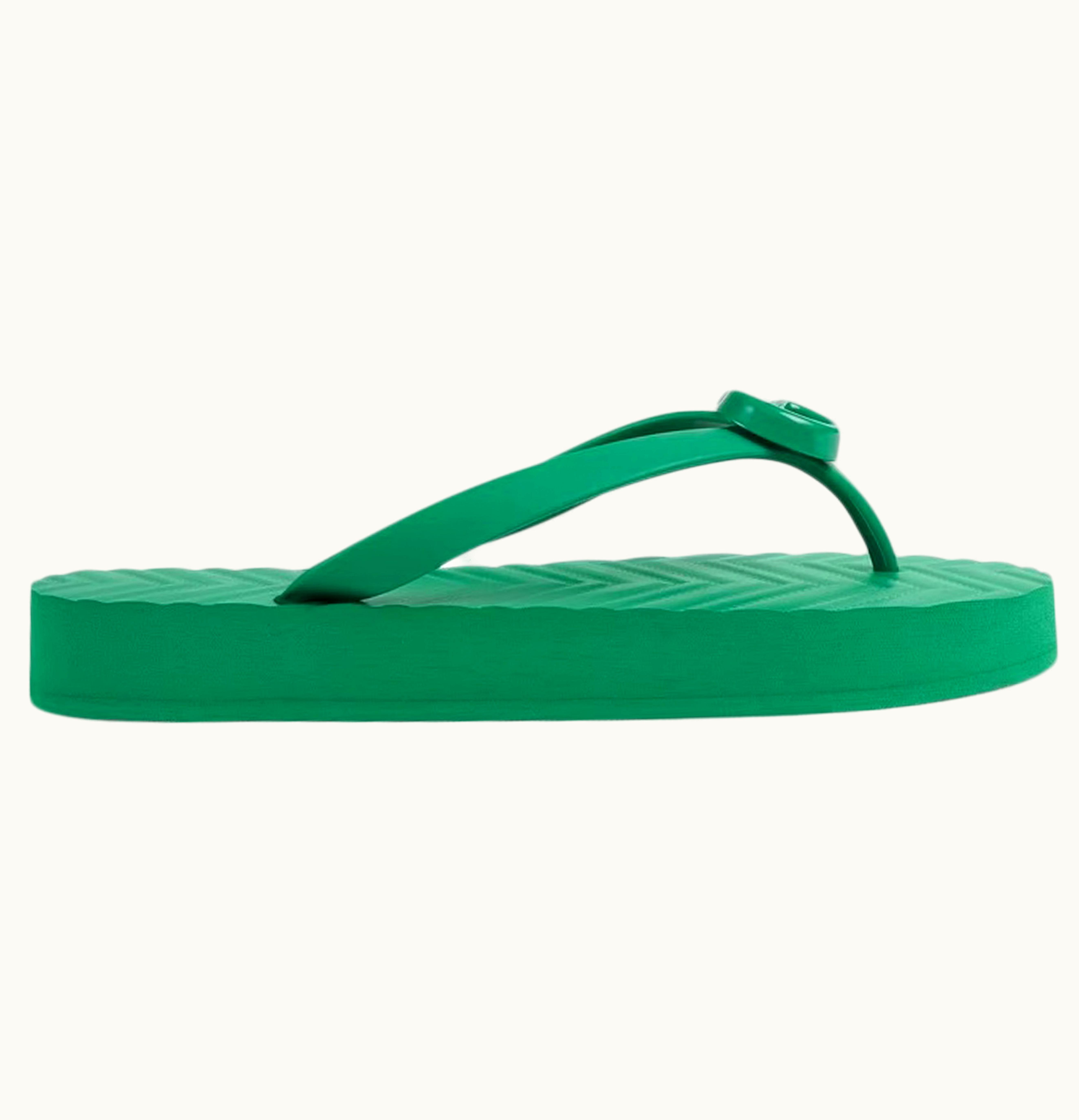 Gucci Chevron Thong Sandal Green Rubber W | GLINT