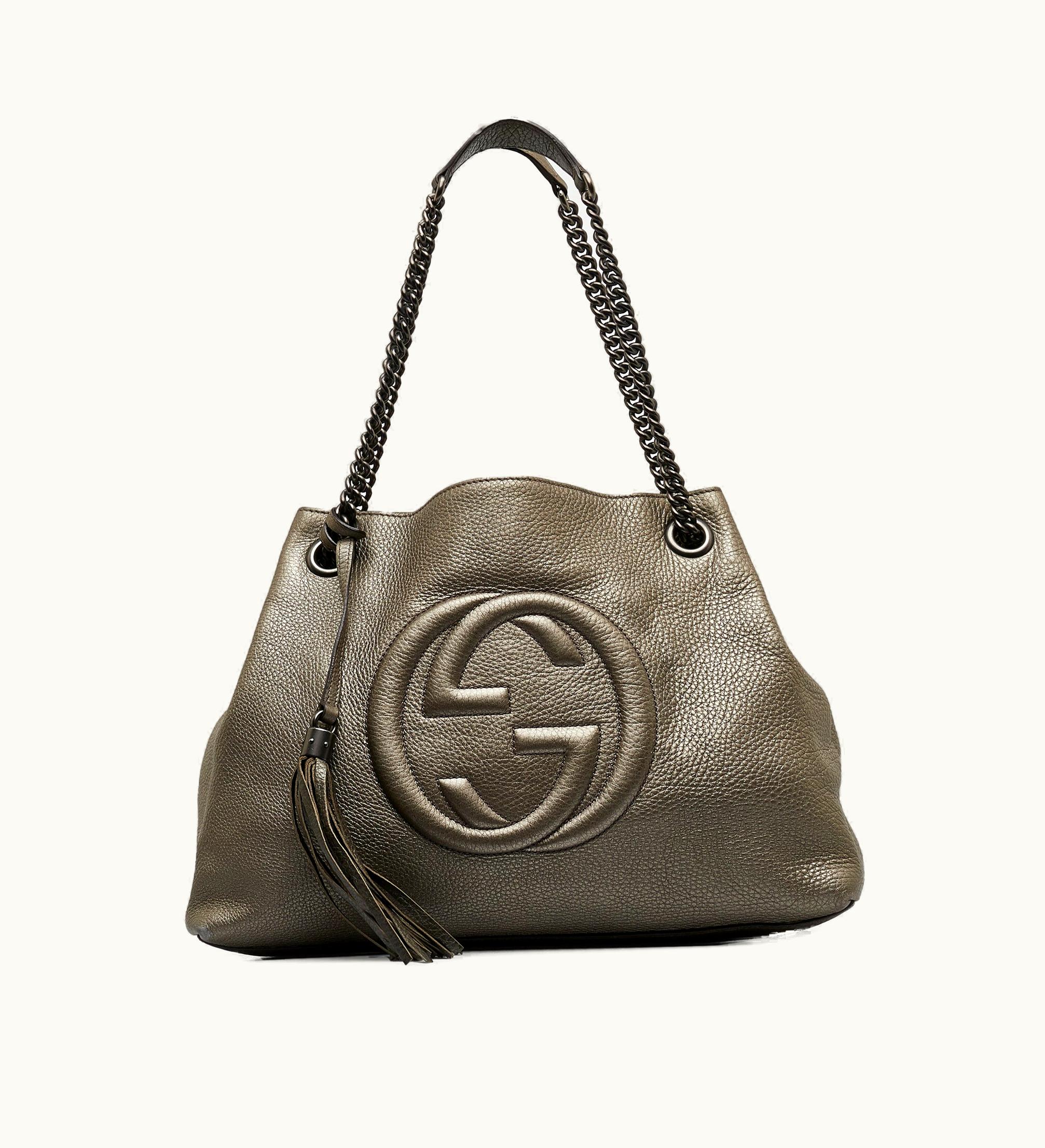 GUCCI Soho Chain Tote Medium Leather Shoulder Bag Black | GLINT