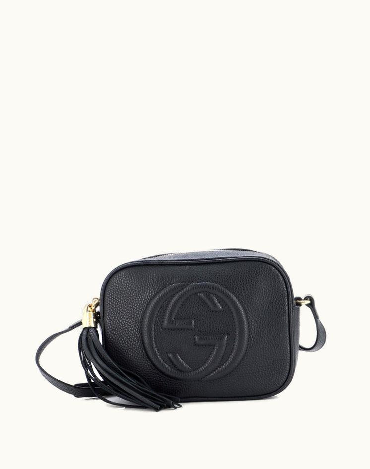 Gucci Soho Disco Crossbody Bag Leather Small Black Gold | GLINT