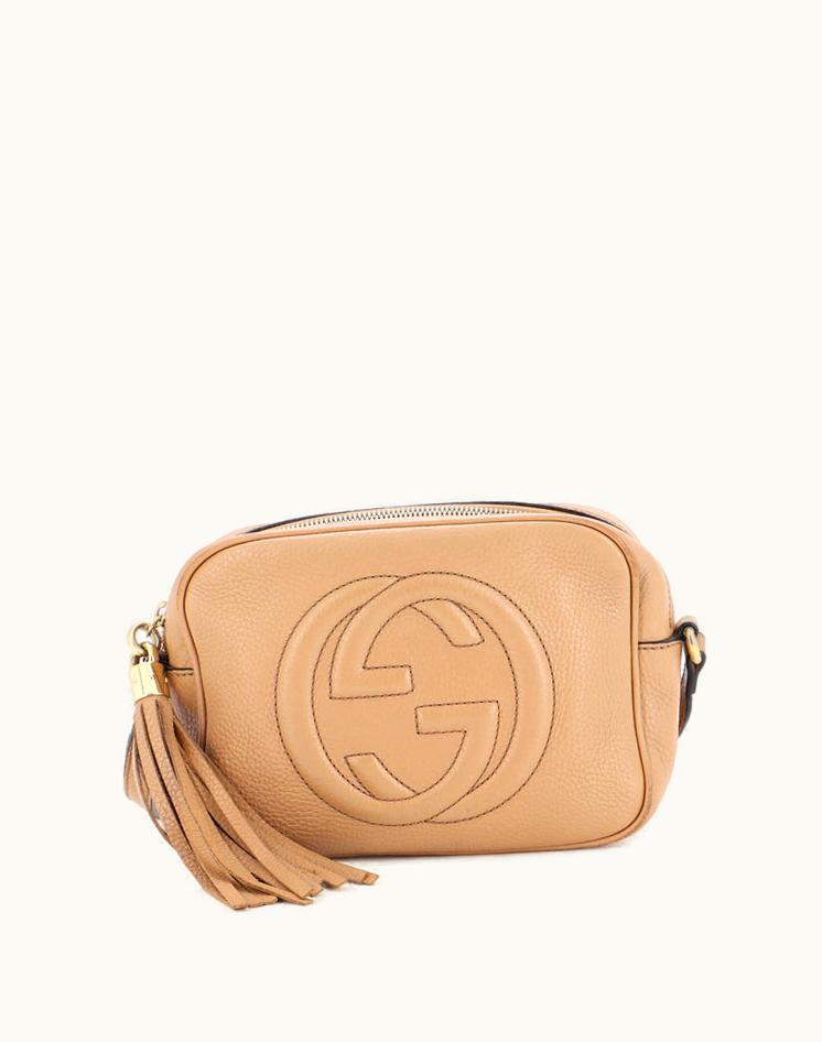 Gucci Soho Disco Crossbody Bag Leather Small Neutral Gold Tone | GLINT