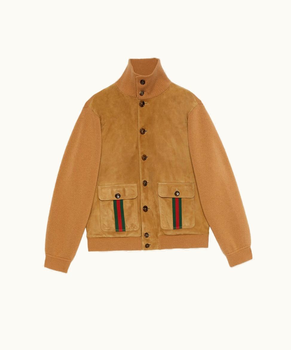 Gucci Suede Bomber Jacket With Web Camel | GLINT
