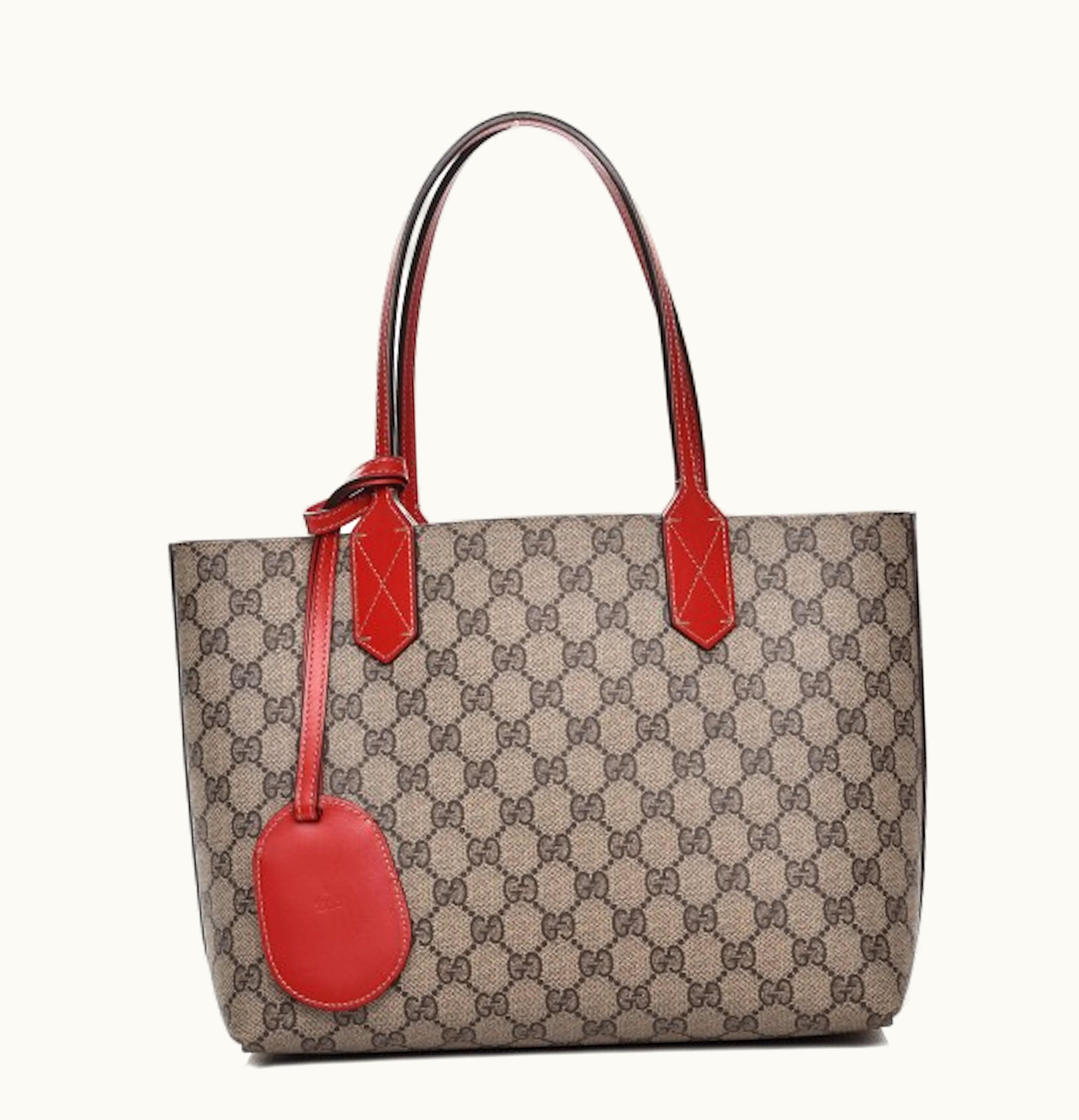 Gucci Tote Reversible Small GG Supreme Coated Canvas Leather Beige Red | GLINT