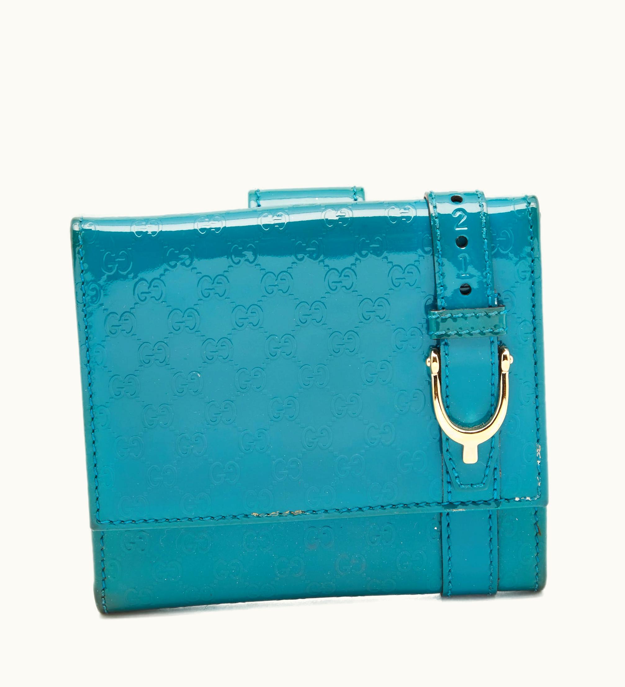Gucci Turquoise Microguccisima Patent Leather Compact Wallet | GLINT