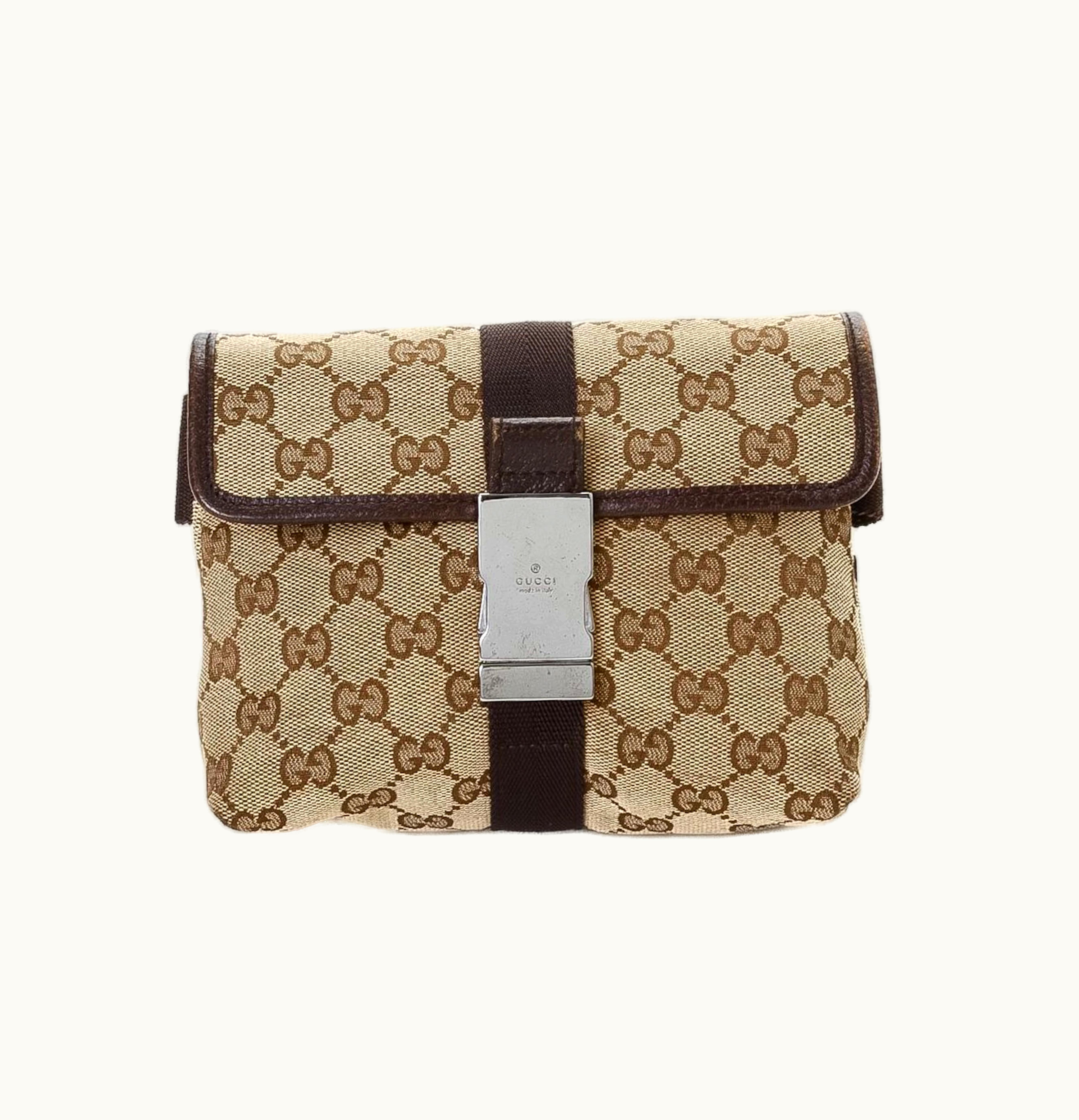 Gucci Waist Pouch Flap Buckle Monogram GG Canvas Beige | GLINT