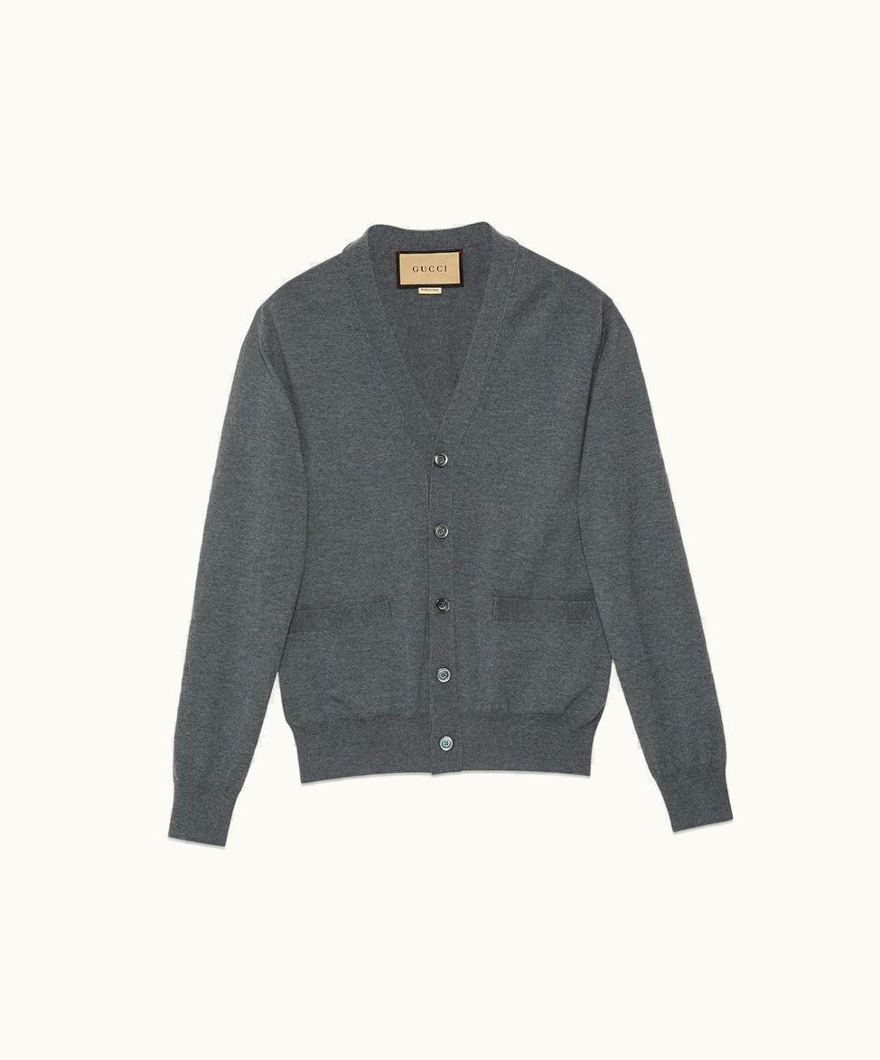 Gucci Wool Cardigan With Embroidery Grey | GLINT