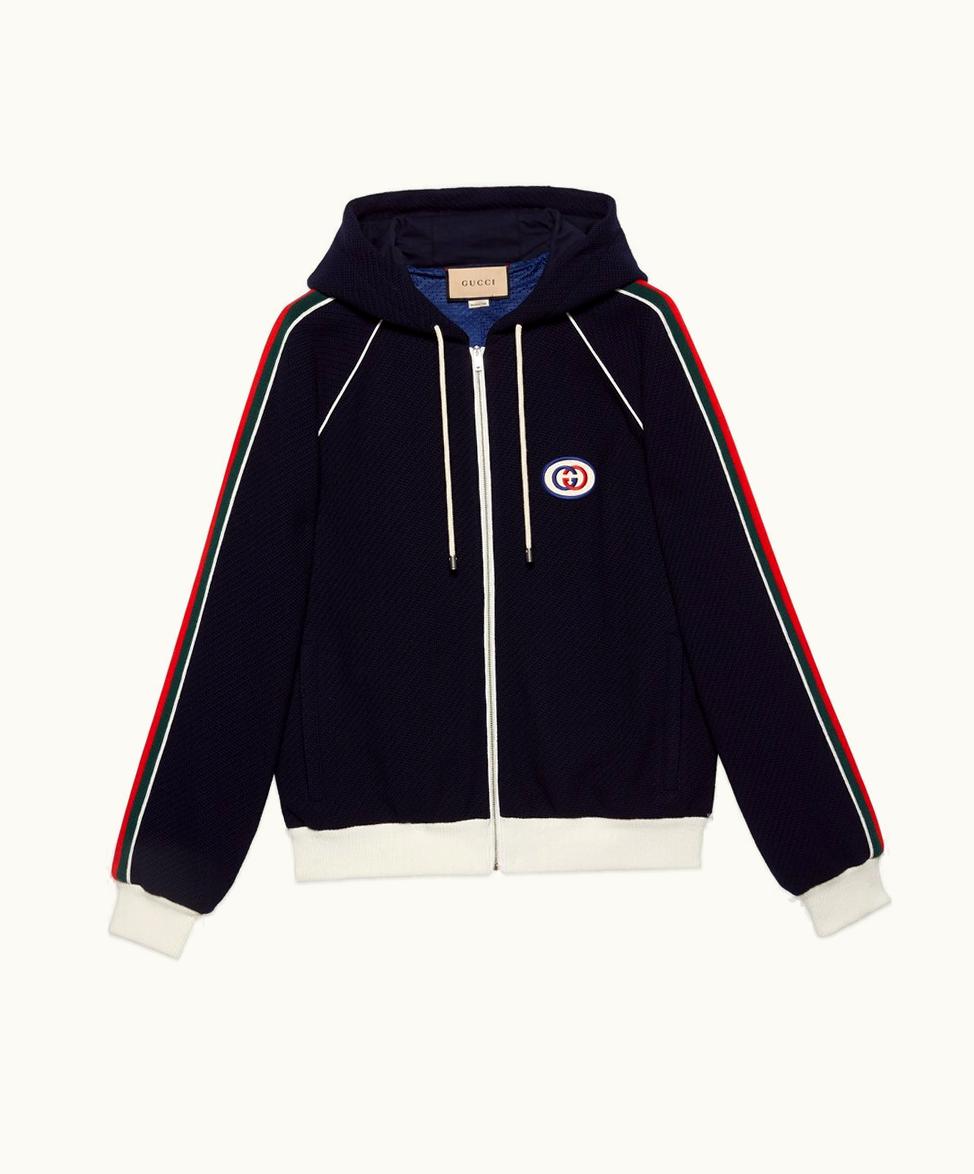 Gucci Wool Jersey Jacket With Web Blue | GLINT
