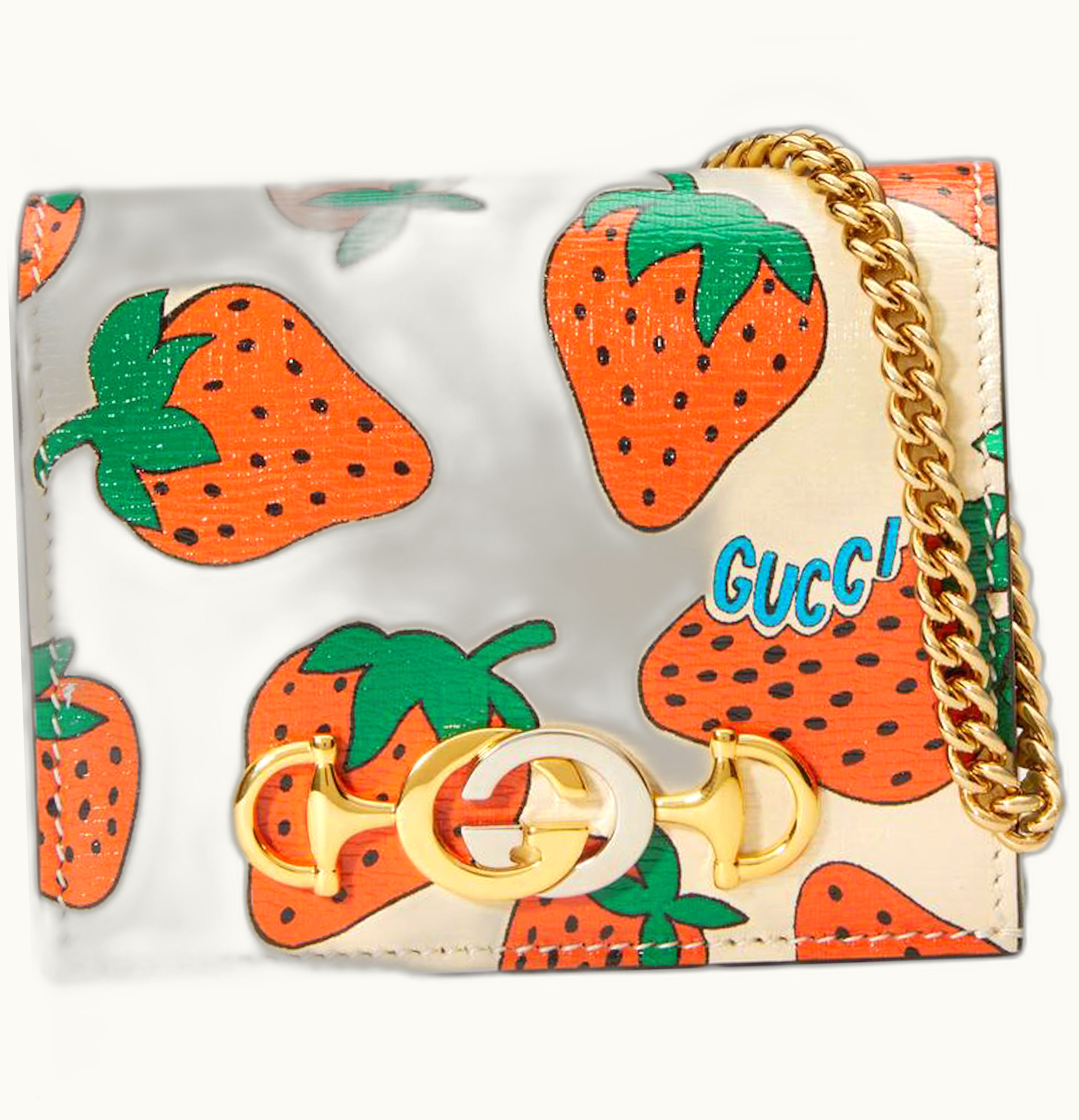 Gucci Zumi Card Case Wallet Strawberry Ivory Multicolor | GLINT