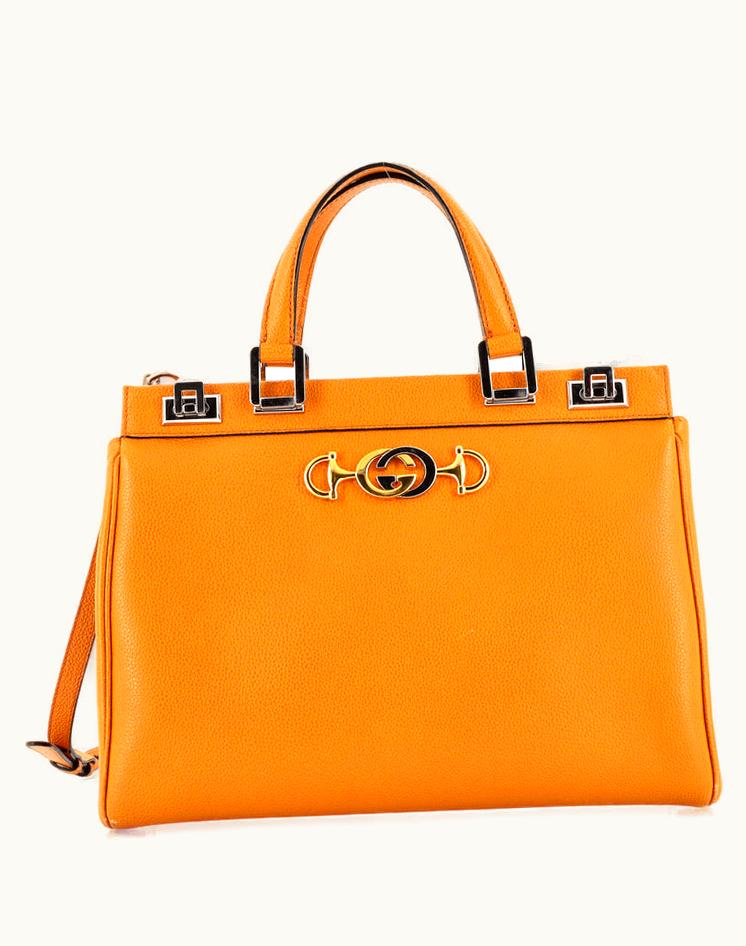 Gucci Zumi Medium Leather Top Handle Bag Orange | GLINT