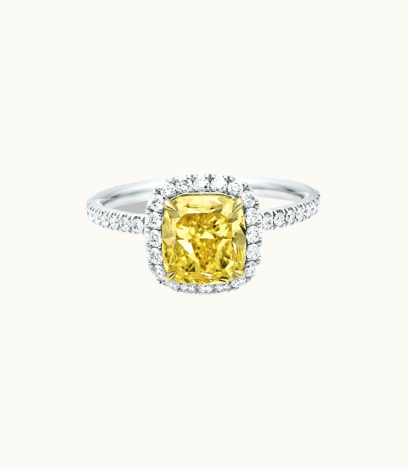 Harry Winston Cushion-Cut Yellow Diamond Micropavé Ring | GLINT