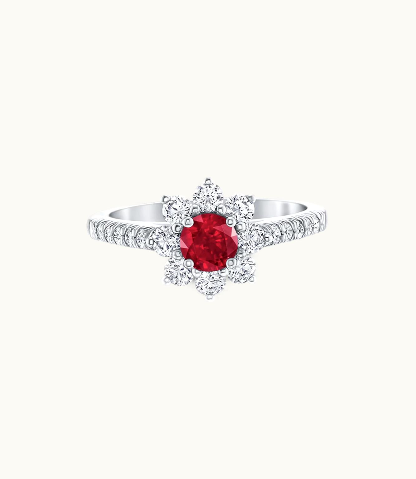 Harry Winston Sunflower Petite Ruby And Diamond Ring | GLINT