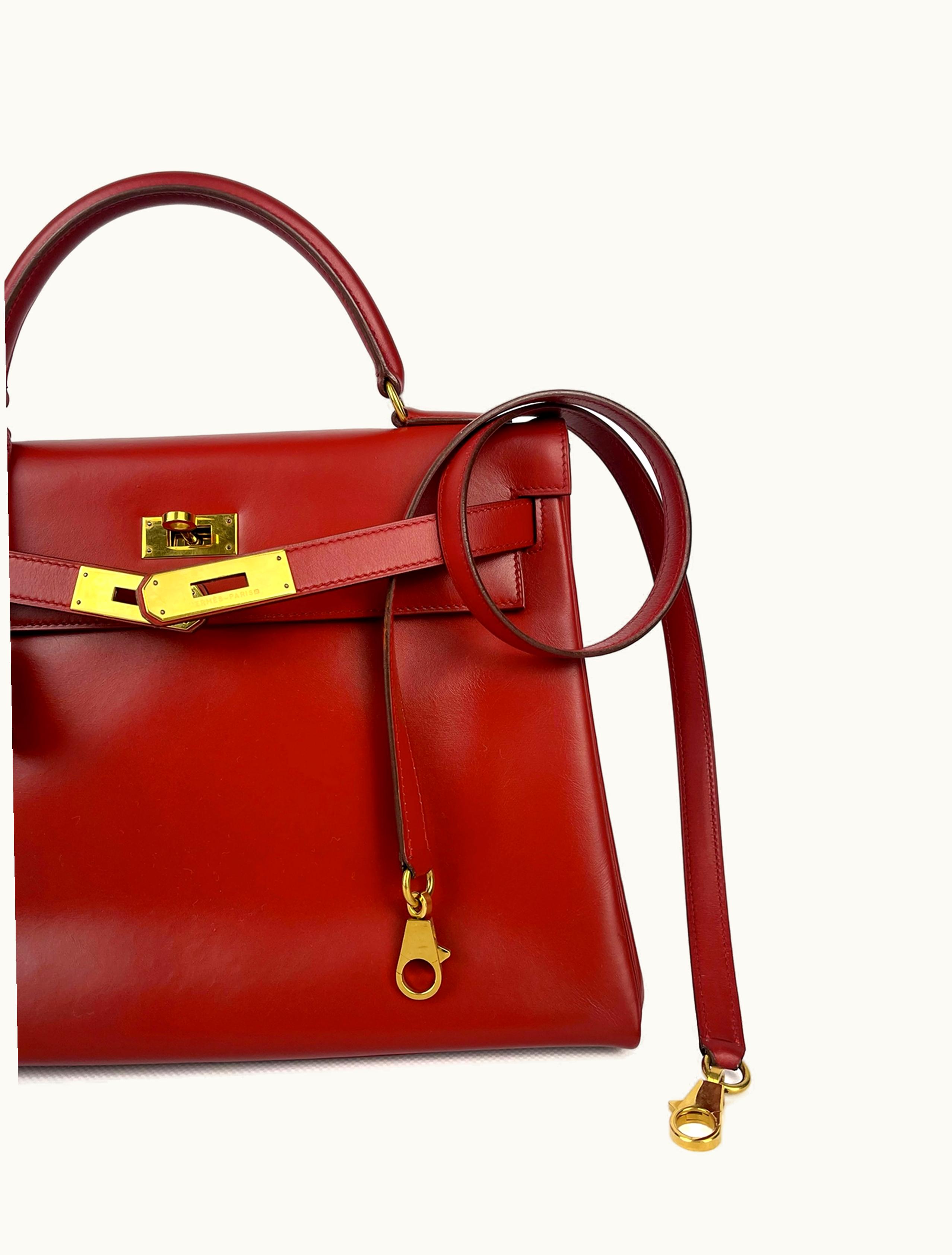 Hermès Kelly 32cm - Rouge Casaque - Box - Gold (GHW) | GLINT
